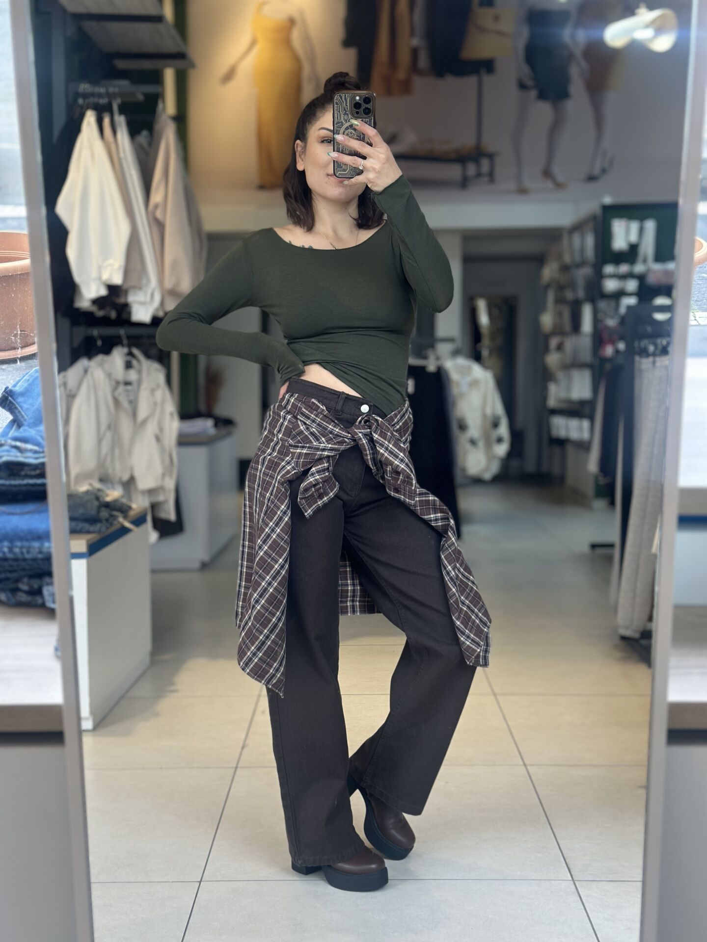 Acı Kahverengi Boru Paça Pantolon.Acı Kahverengi Boru Paça Pantolon