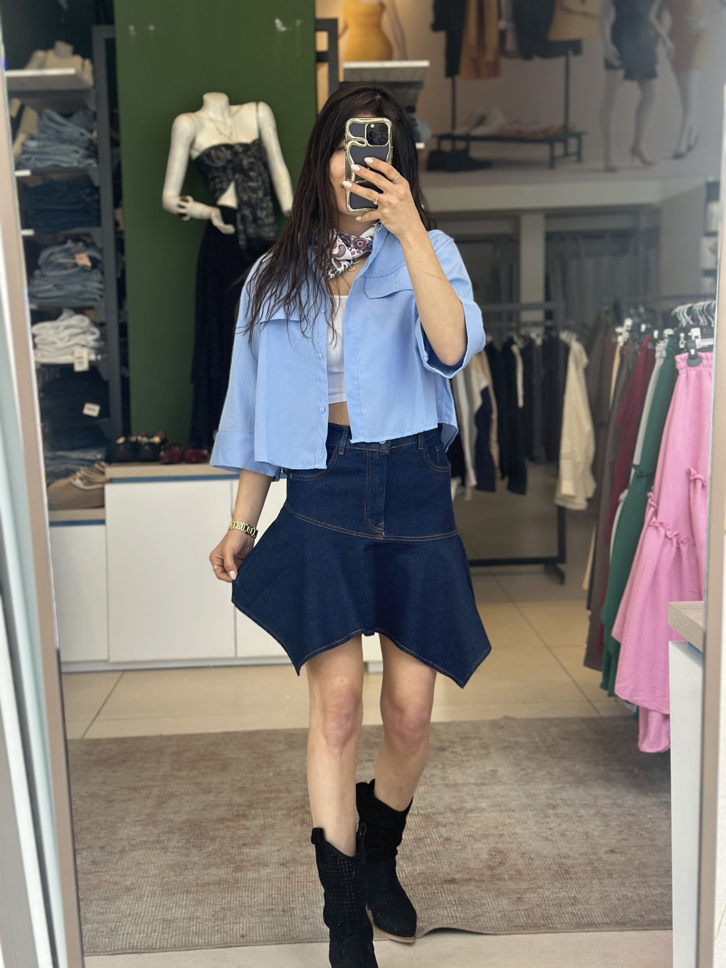 Bu asimetrik kesim kot etek, tarzınızı tamamlayacak şık ve modern bir parçadır. Yüksek kaliteli denim kumaştan üretilmiştir ve vücuda oturan kesimi sayesinde şıklığı ve rahatlığı bir arada sunar. Hem günlük kullanıma uygun, hem de özel davetlerde şıklığınızı tamamlayacak bir parçadır.