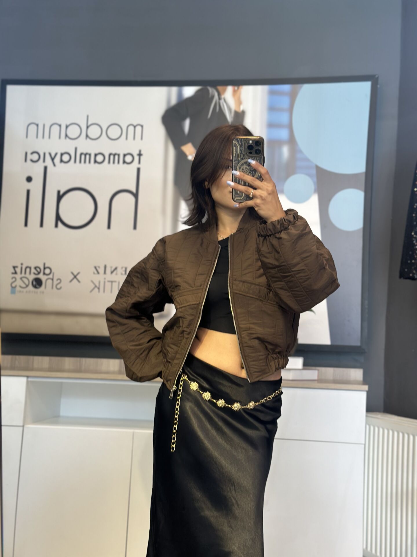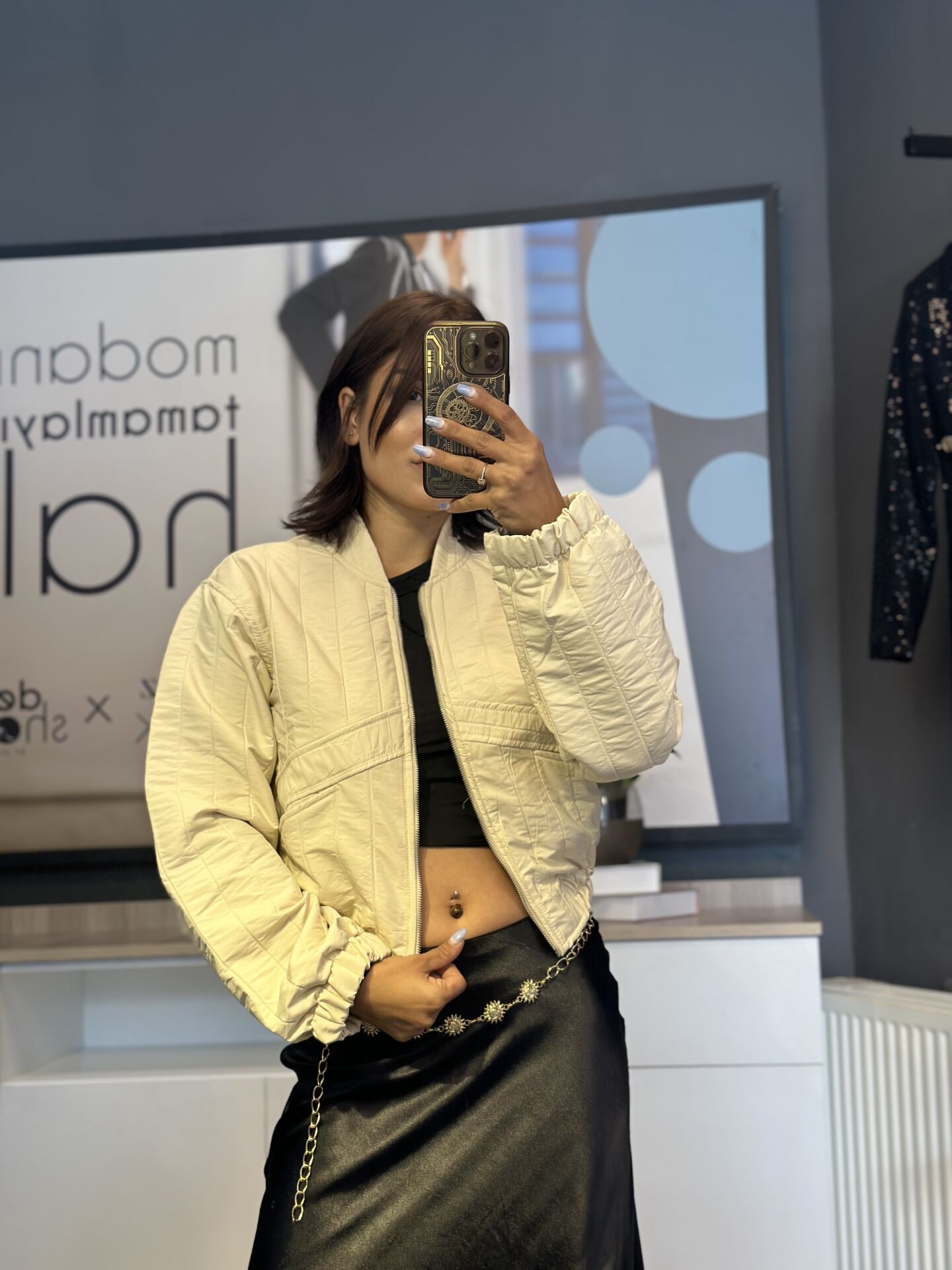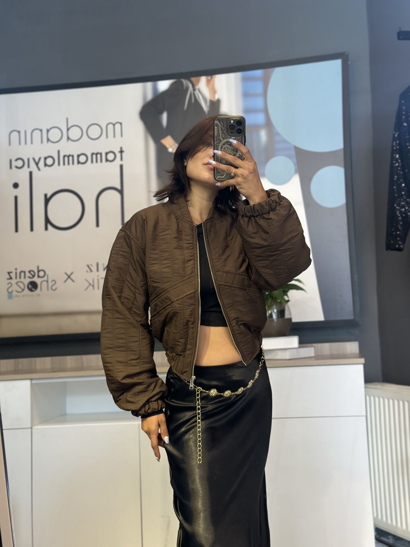 Beli Lastikli Kisa Kapitone Ceket.Beli Lastikli Kisa Kapitone Ceket