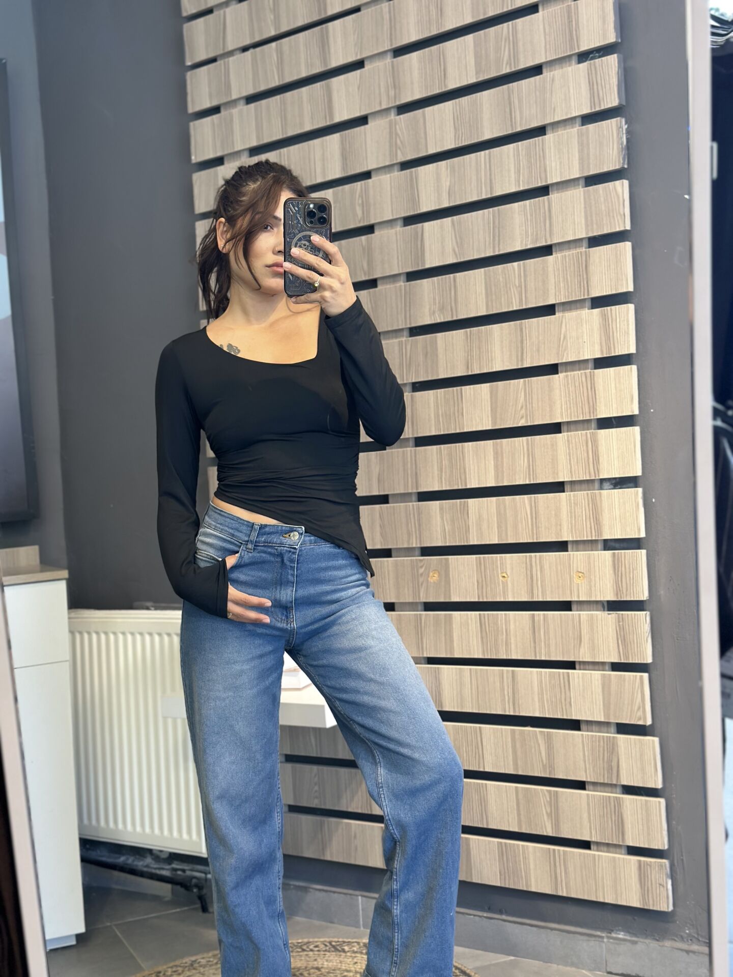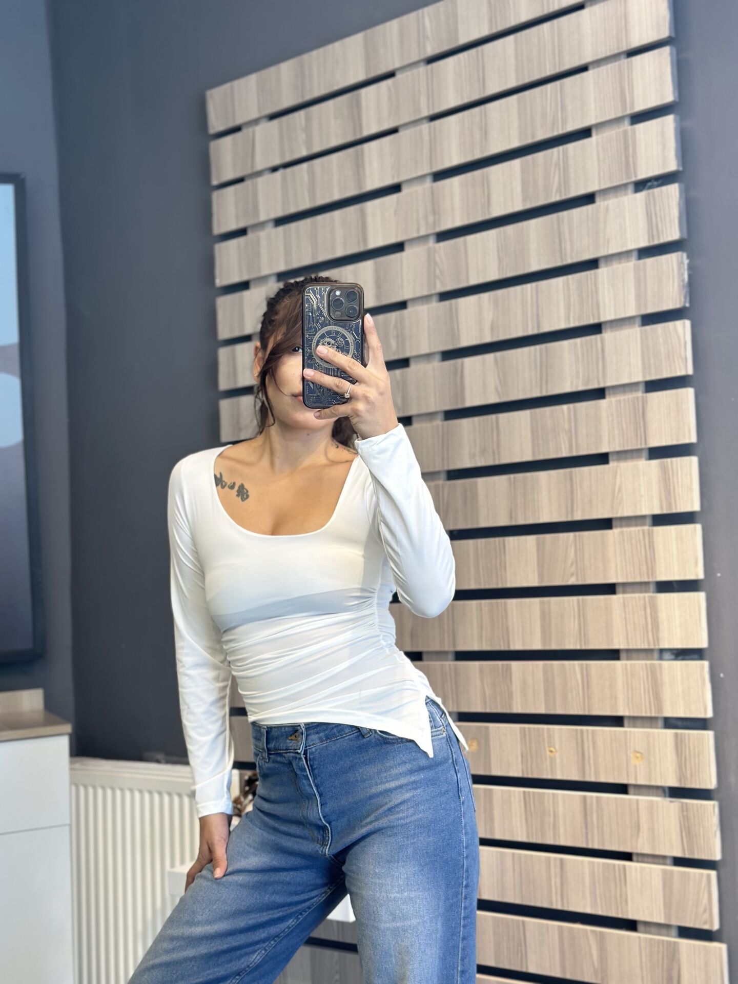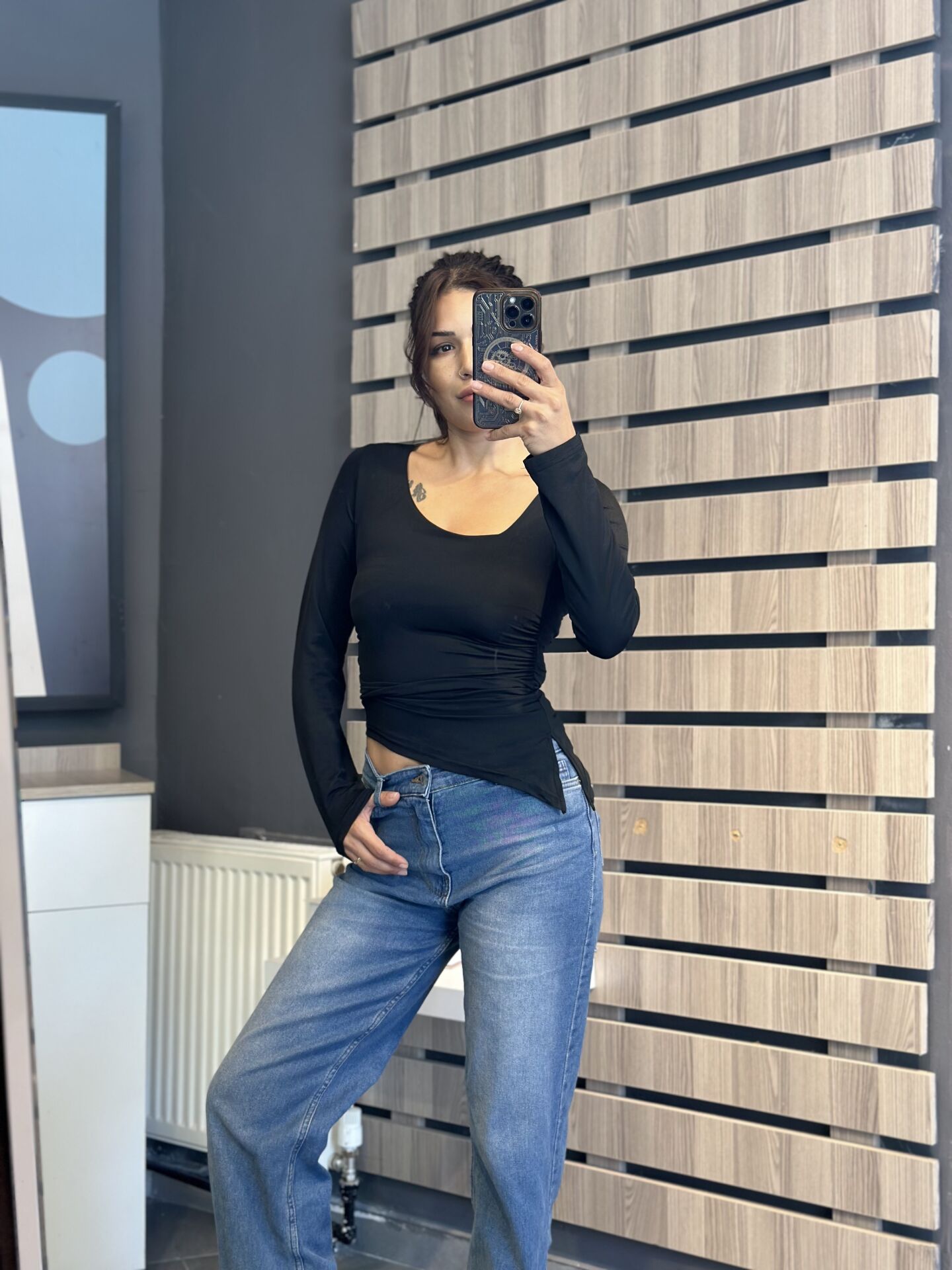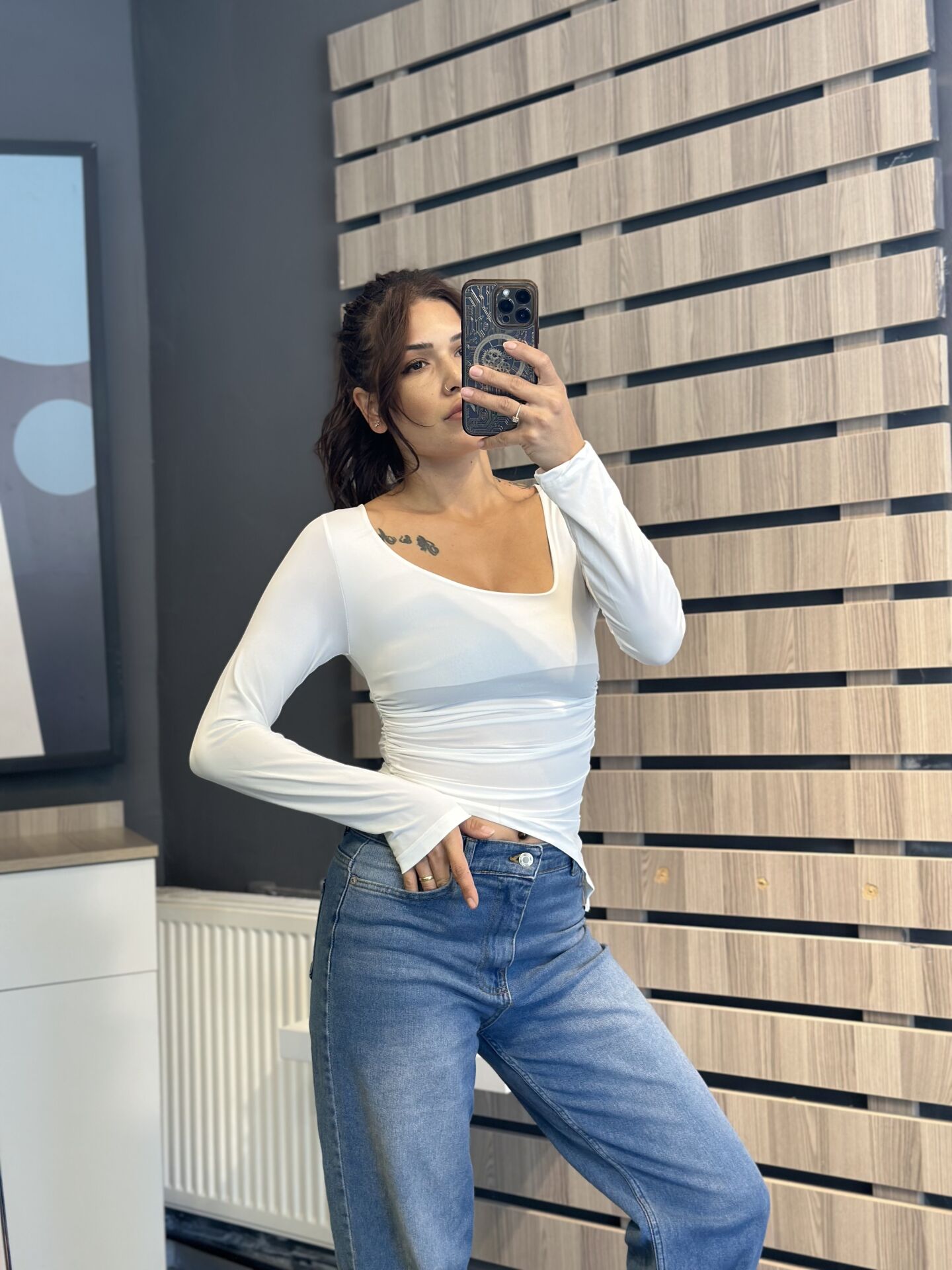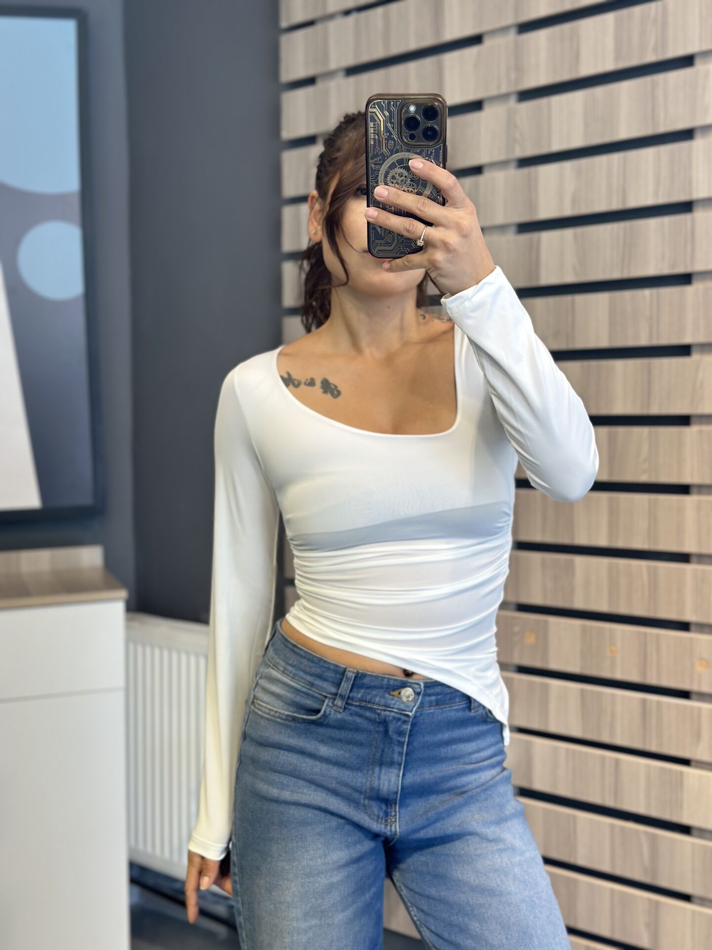 Büzgü Detayli Kare Yaka Bluz.Büzgü Detayli Kare Yaka Bluz