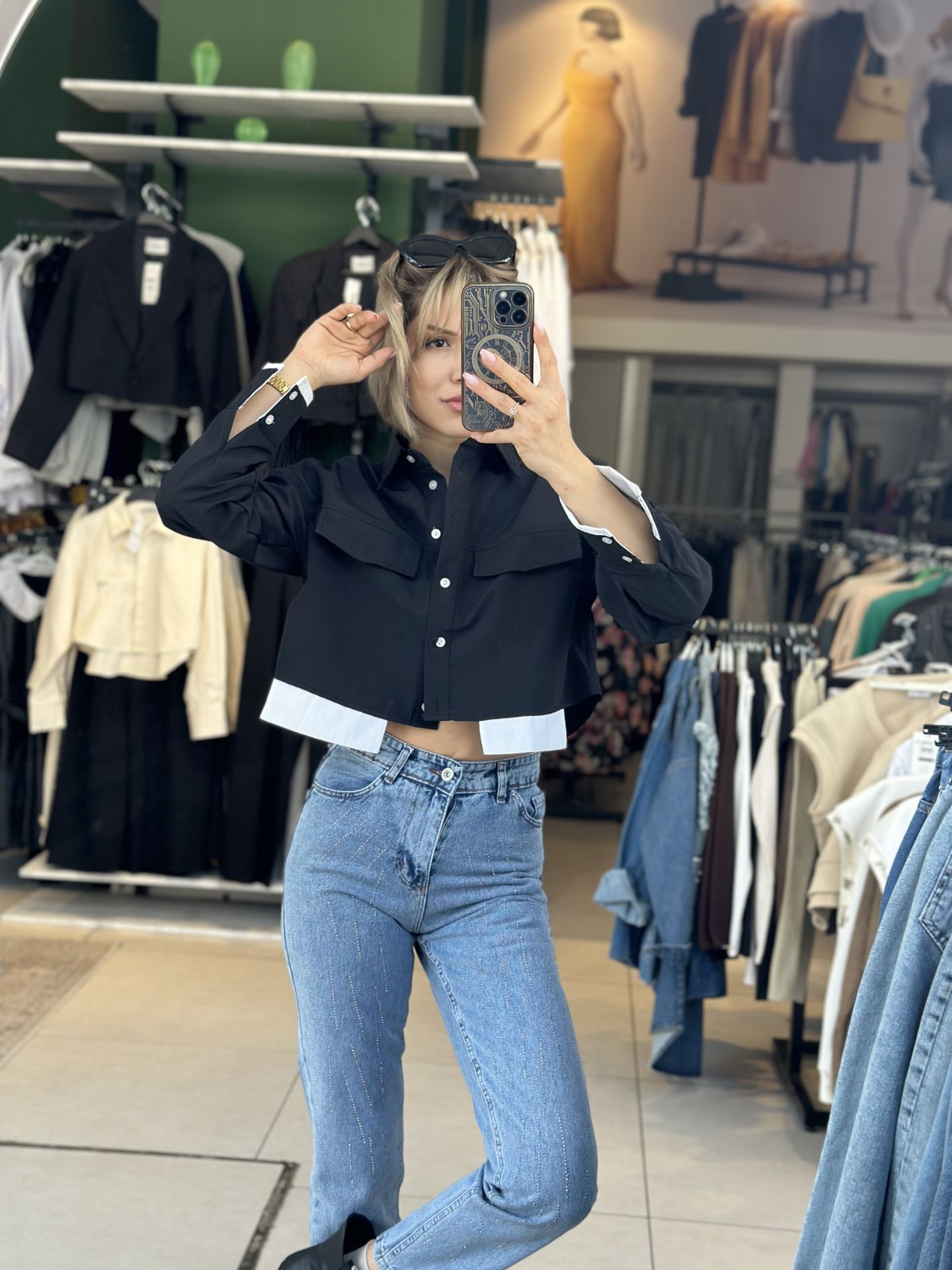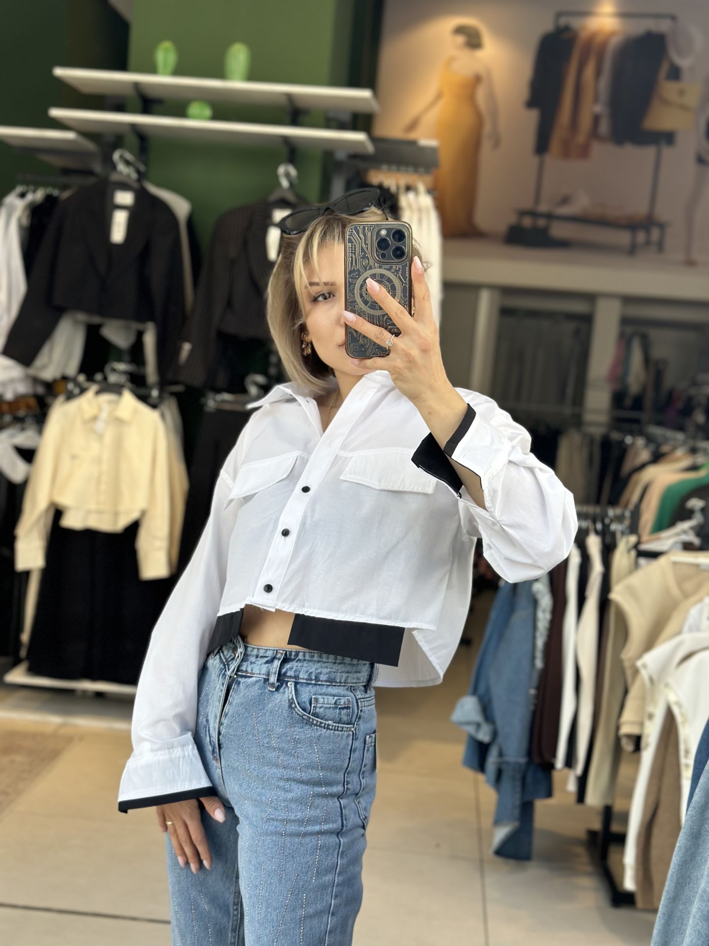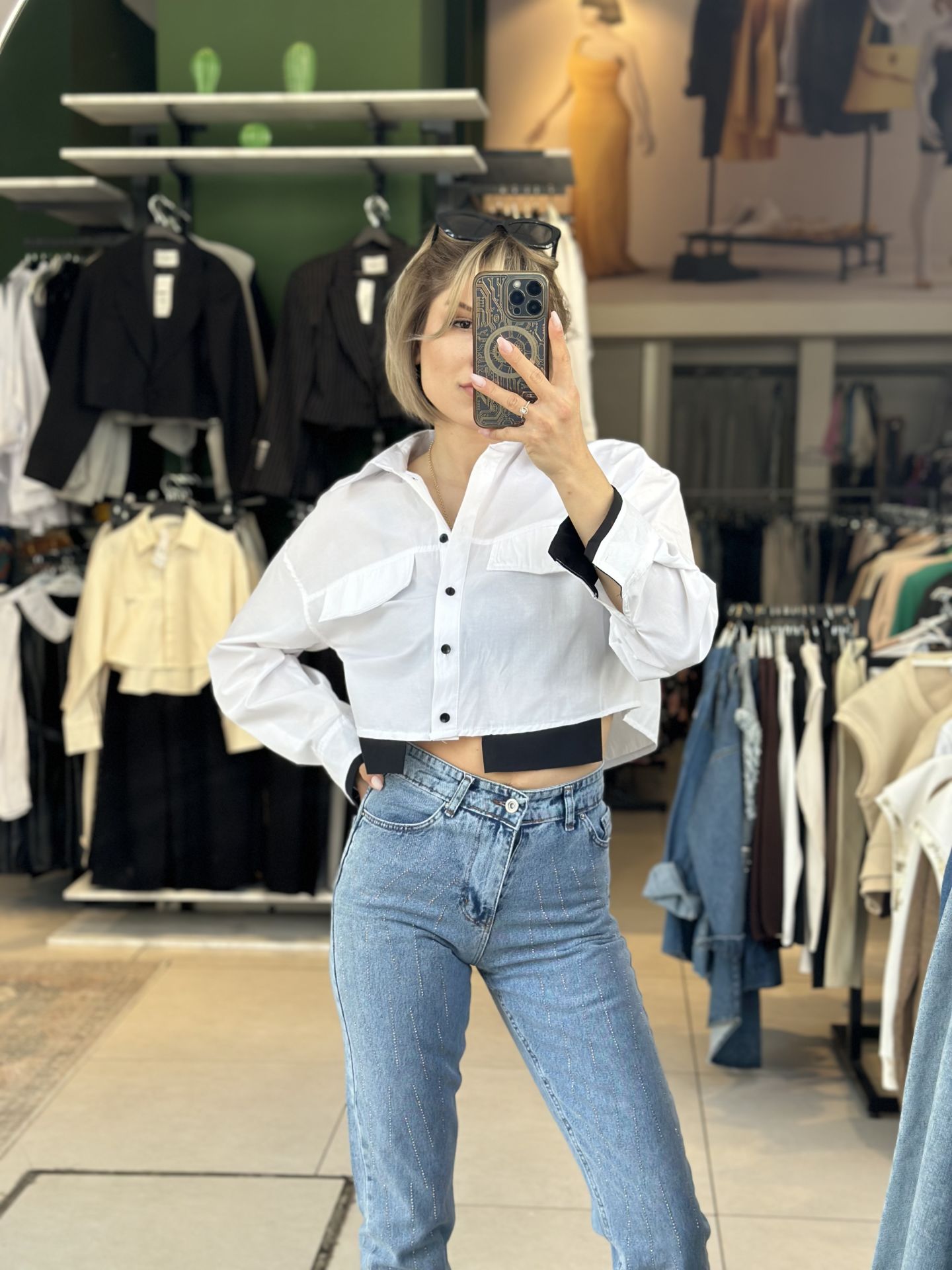Cep Detay Crop Gömlek Cep Detay Crop Gömlek.Cep Detay Crop Gömlek SCST3180 Cep Detay Crop Gömlek