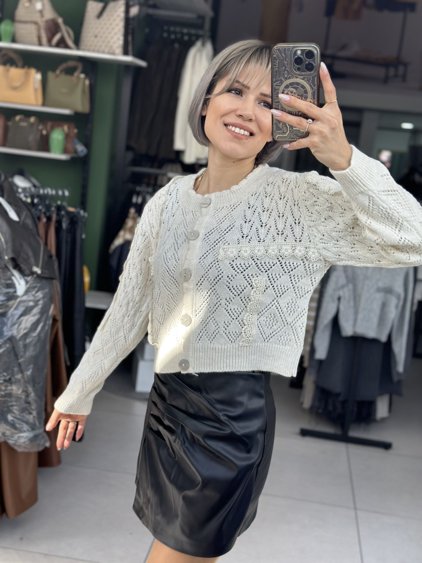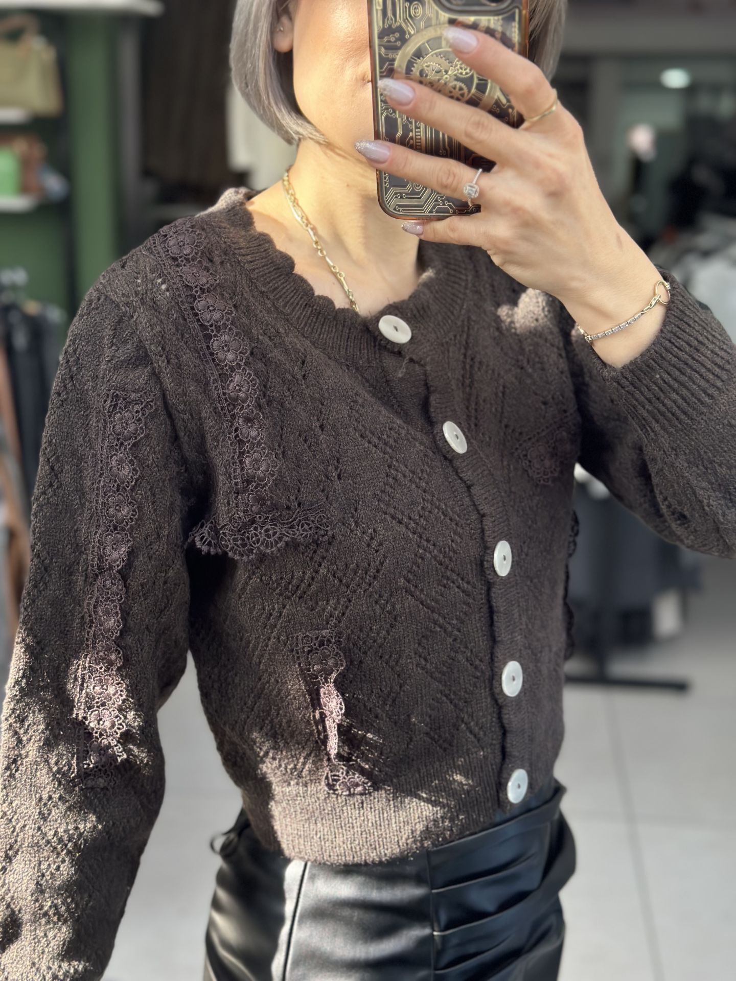 Dantel Detay Düğmeli Yumoş Hırka Dantel Detay Düğmeli Yumoş Hırka. SCST3120 Dantel Detay Düğmeli Yumoş Hırka
