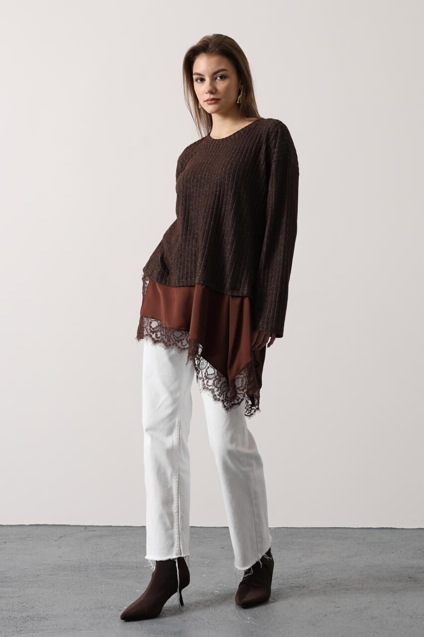 Dantel Detaylı Asimetrik Kesim Bluz.Dantel Detaylı Asimetrik Kesim Bluz