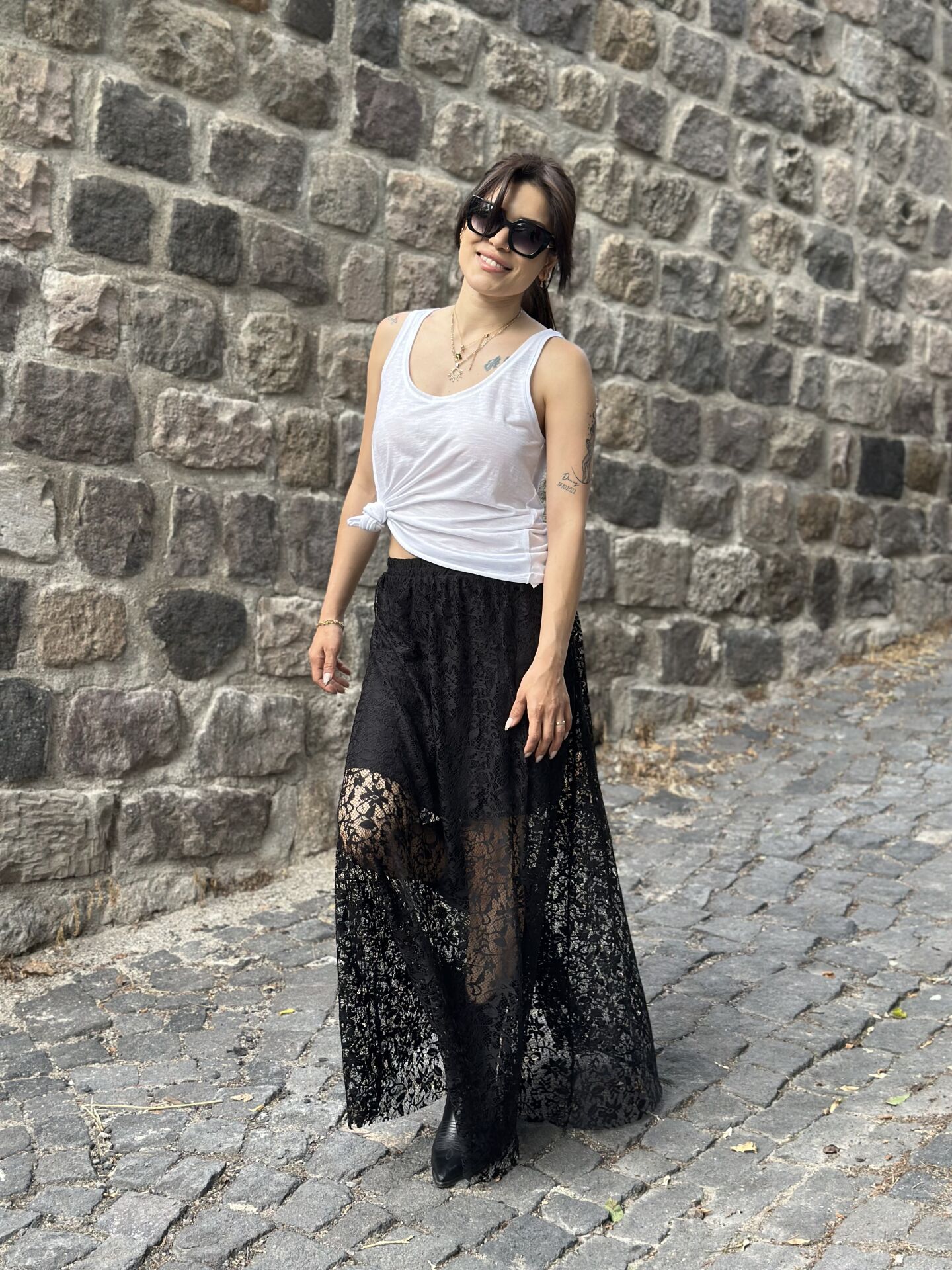 Bu zarif dantel etek, her şıklık seviyesine uygun ve her durumda mükemmel bir seçenek. Şık tasarımı ve ince işçiliği ile herkesin ilgisini çekecek. Gardırobunuzu bu etekle tamamlayarak göz kamaştırıcı bir tarz oluşturabilirsiniz. Herhangi bir özel etkinlik için mükemmel bir seçenek!