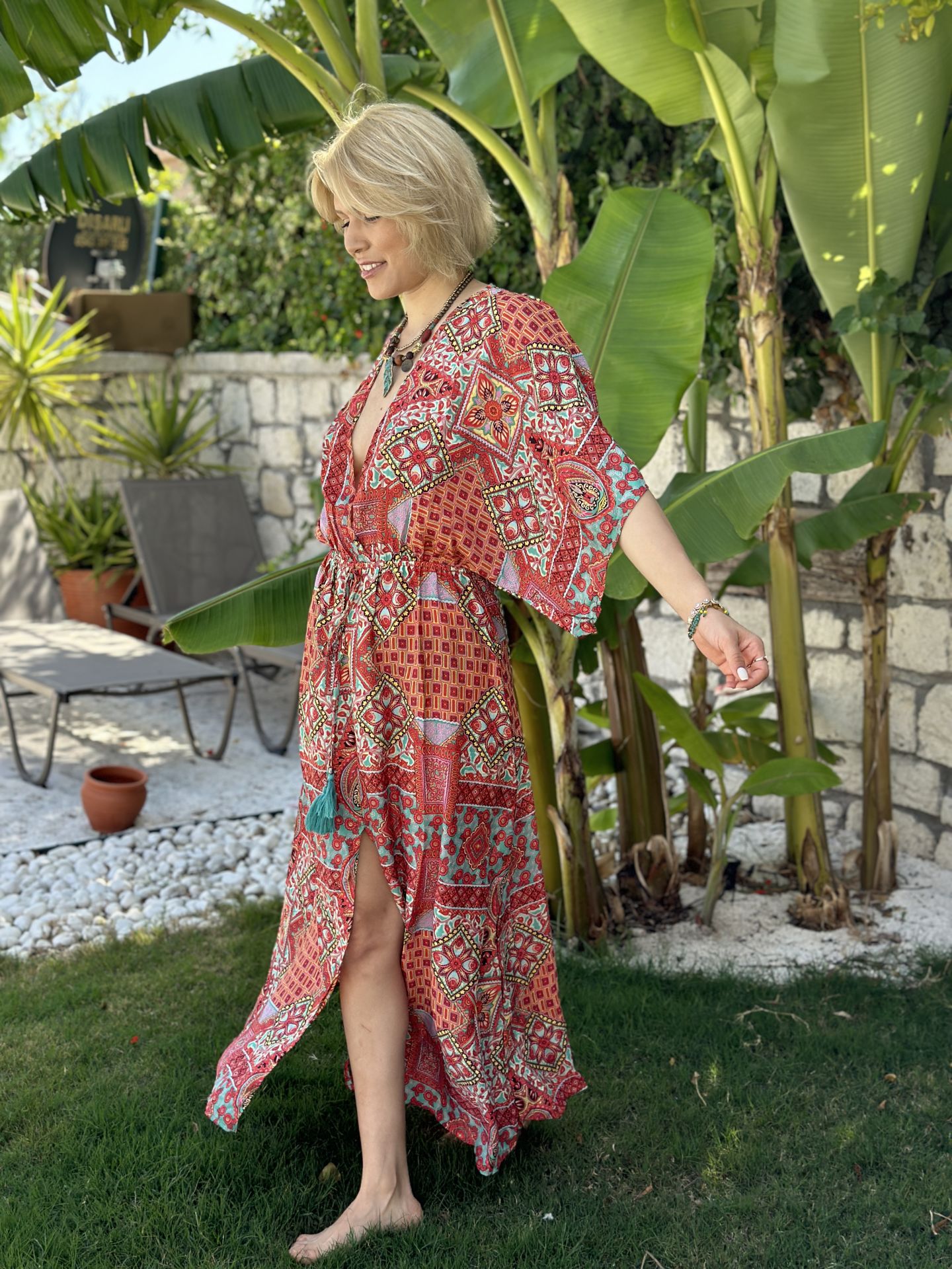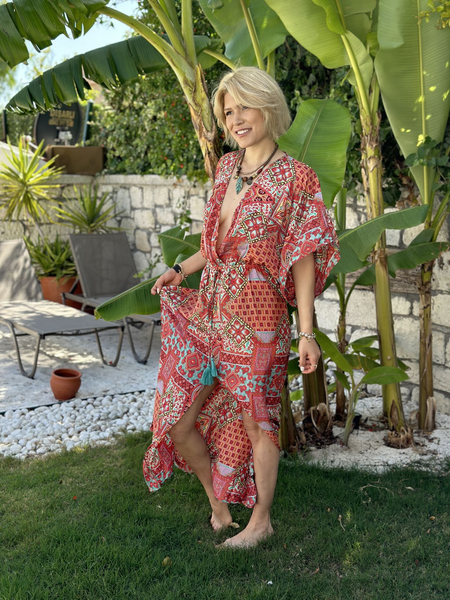 Desenli Yırtmaçlı Saf İpek Elbise Desenli Yırtmaçlı Saf İpek Elbise. 3E9VHSNEFR Desenli Yırtmaçlı Saf İpek Elbise