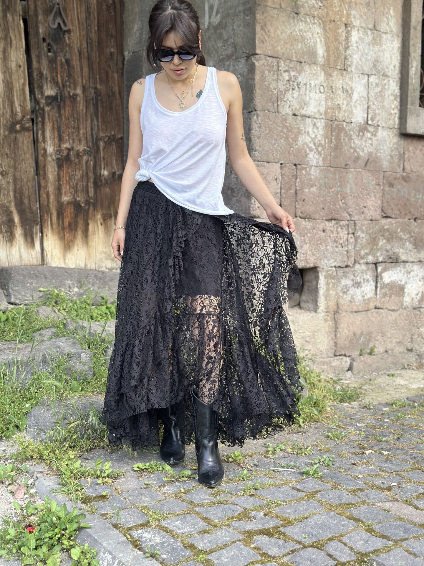 Bu dantel etek, zarif ve şık görünümüyle herhangi bir özel gün veya davette mükemmel bir seçenektir. Kaliteli dantel kumaşı ve ince işçiliği ile dikkat çeker. Bu etek, her tarz ve vücut tipine uyum sağlayacak şekilde tasarlanmıştır. Gardırobunuzun vazgeçilmez parçalarından biri olacak.
