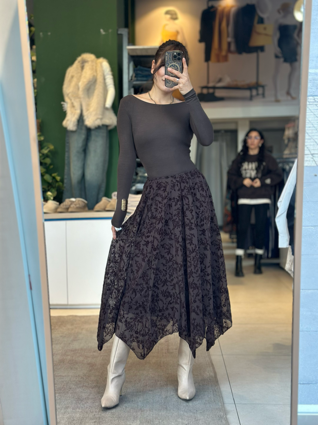 Flok Baskılı Tül Etek.Flok Baskılı Tül Etek
