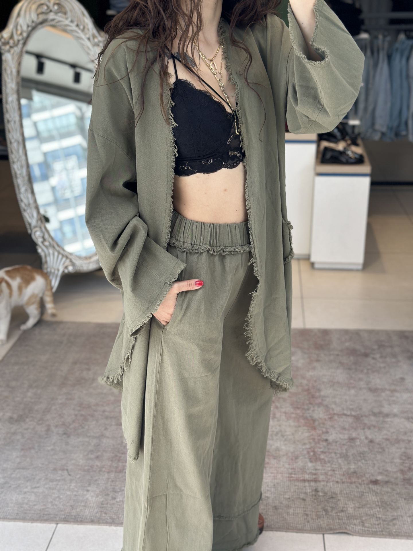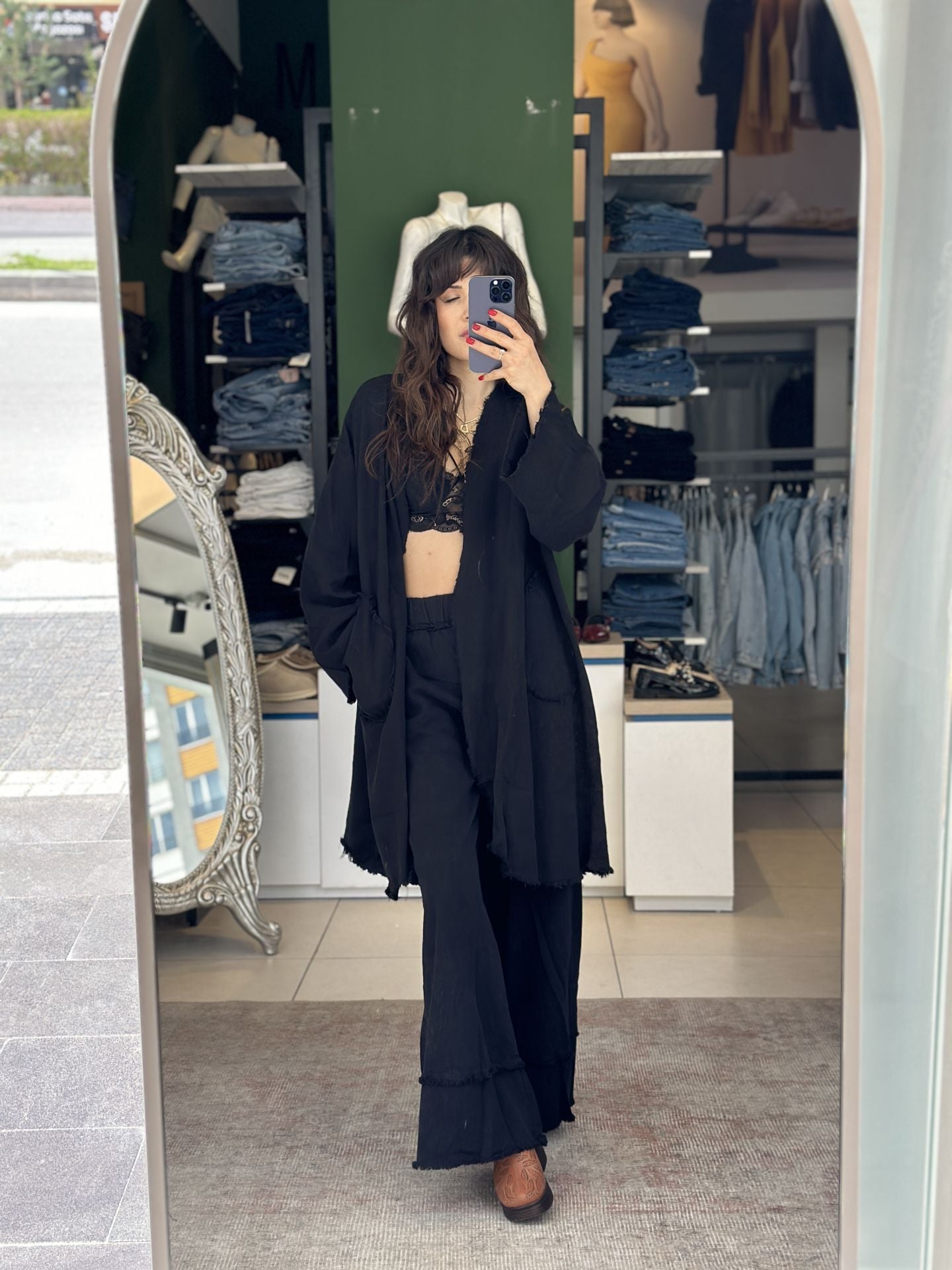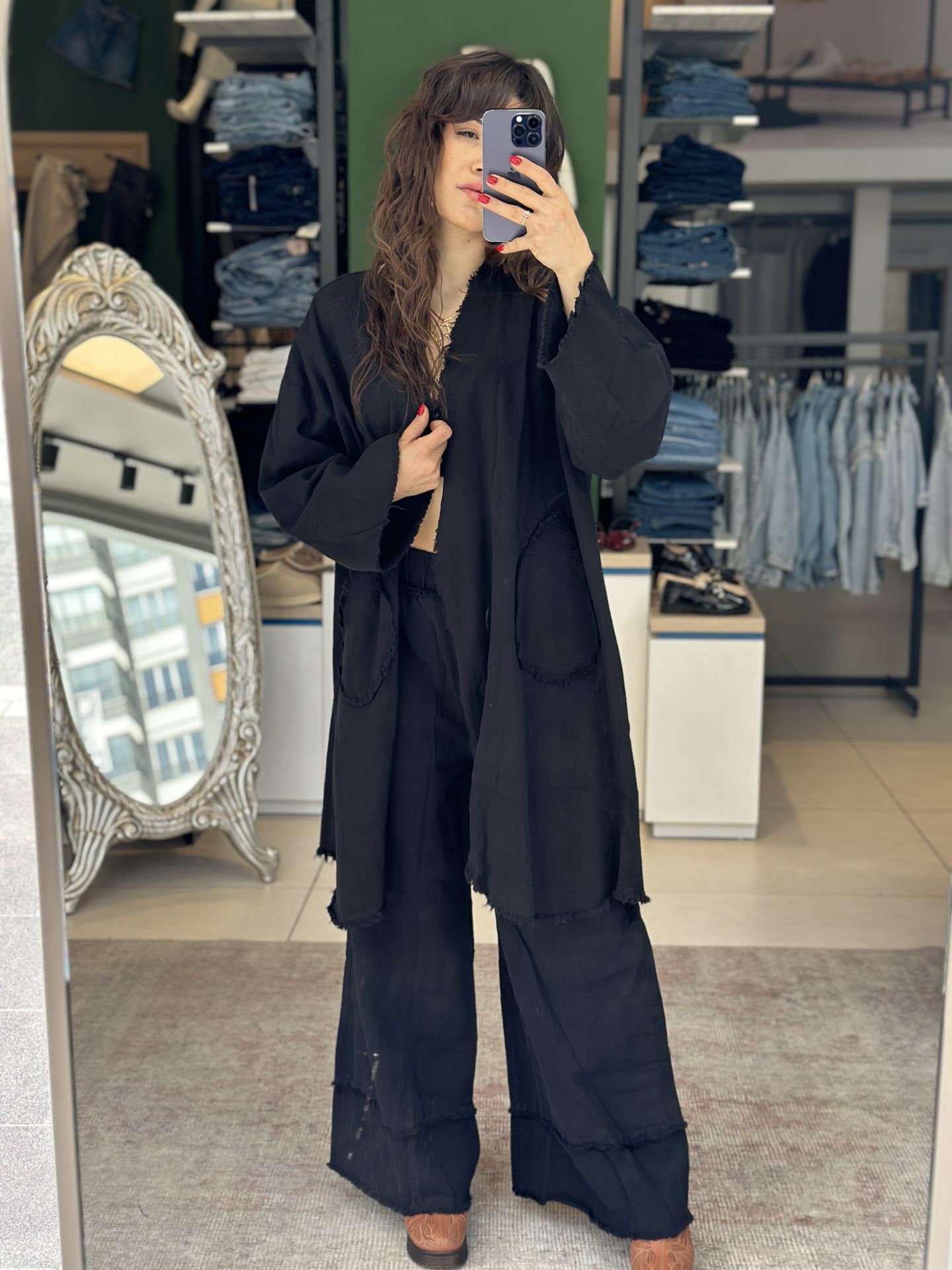 Bu şık ve rahat kesimli gabardin takım, tarzınızı tamamlamak için mükemmel bir seçenektir. Yüksek kaliteli kumaşı ve modern tasarımı sayesinde hem şık etkinliklerde hem de günlük kullanımda rahatlıkla tercih edebilirsiniz. Hem şıklığı hem de konforu bir arada arayanlar için ideal bir seçim.