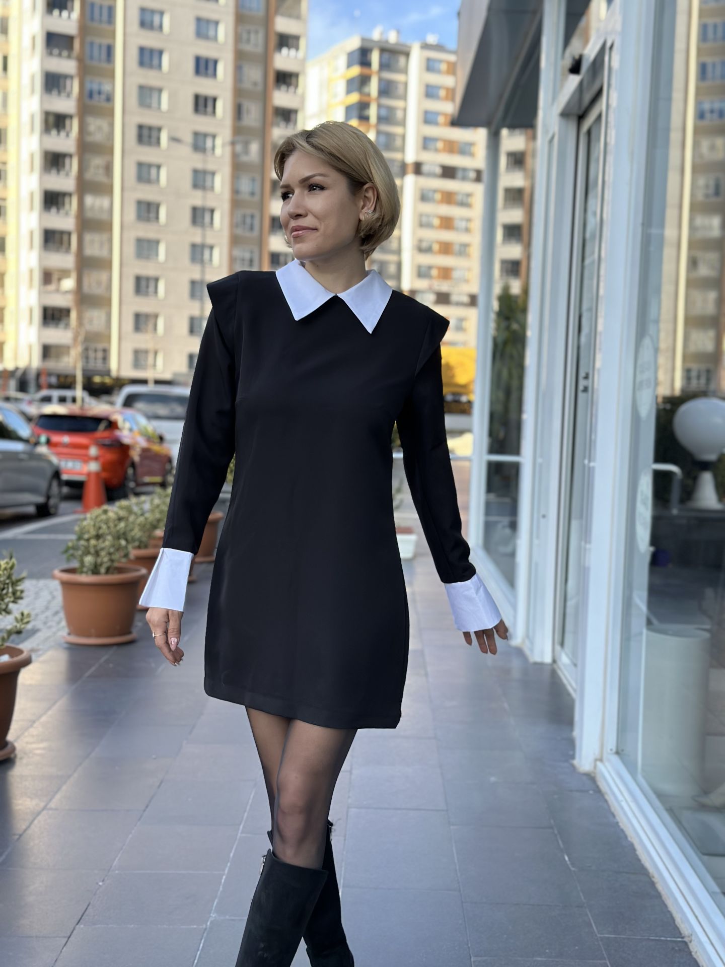 Gömlek Yaka Vatkalı Mini Elbise Gömlek Yaka Vatkalı Mini Elbise. SCST2996 Gömlek Yaka Vatkalı Mini Elbise