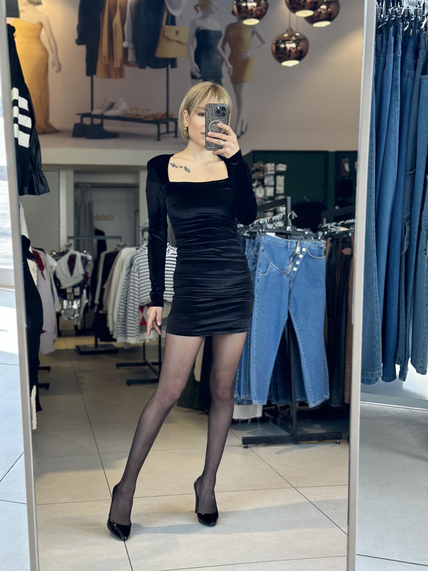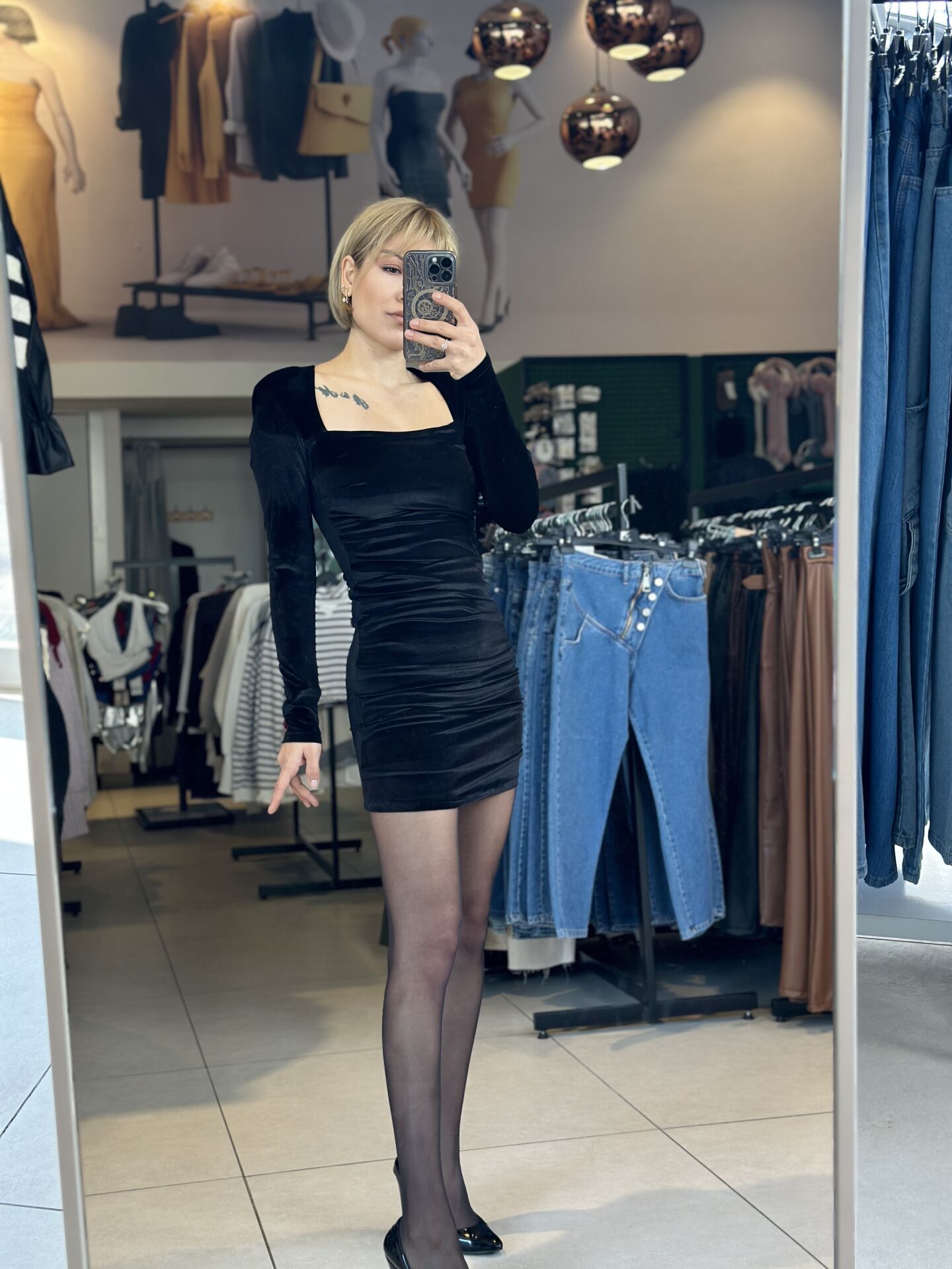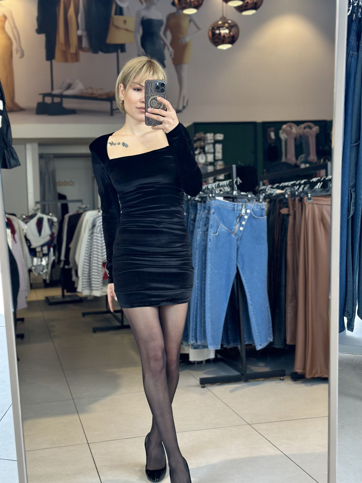 Kare Yaka Mini Kadife Elbise Kare Yaka Mini Kadife Elbise. SCST2958 Kare Yaka Mini Kadife Elbise