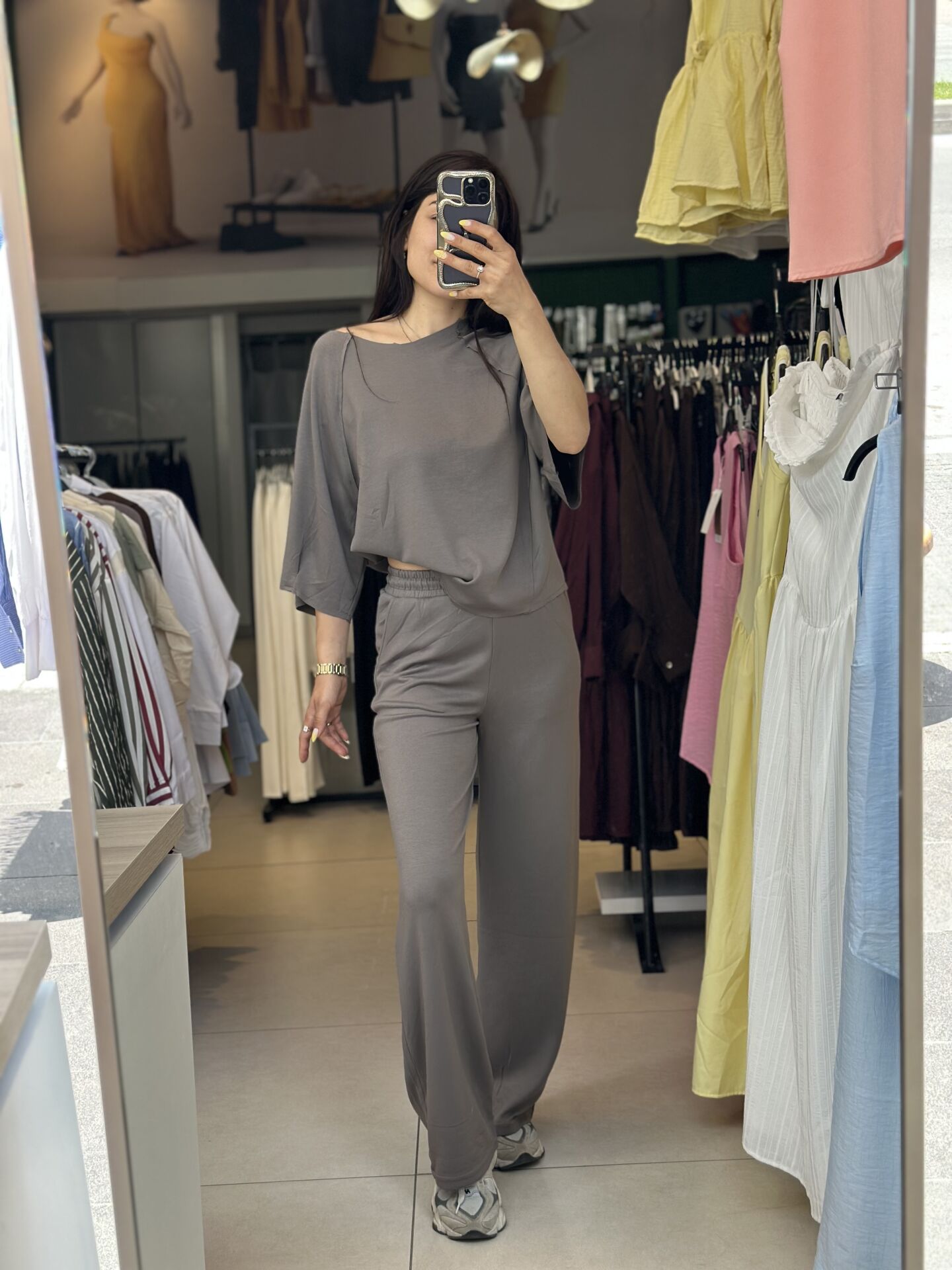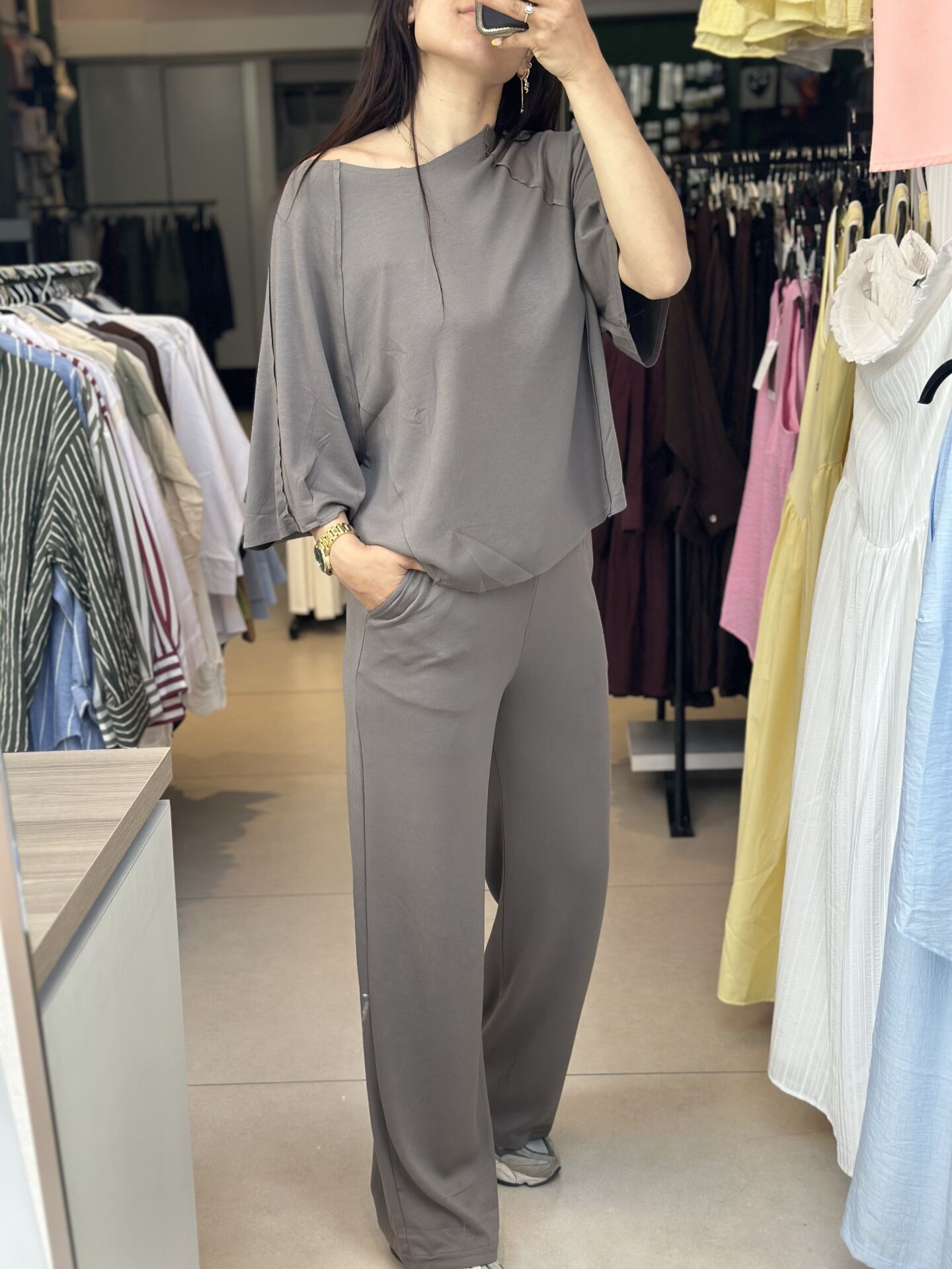 Yumuşak ve rahat kayık yaka modal kumaş takımı, şıklığı ve konforu bir arada sunar. Gündelik giyim için ideal olan bu takım, özgün tasarımı ve kaliteli malzemesiyle dikkat çeker. Günlük kullanım için mükemmel bir seçenektir.