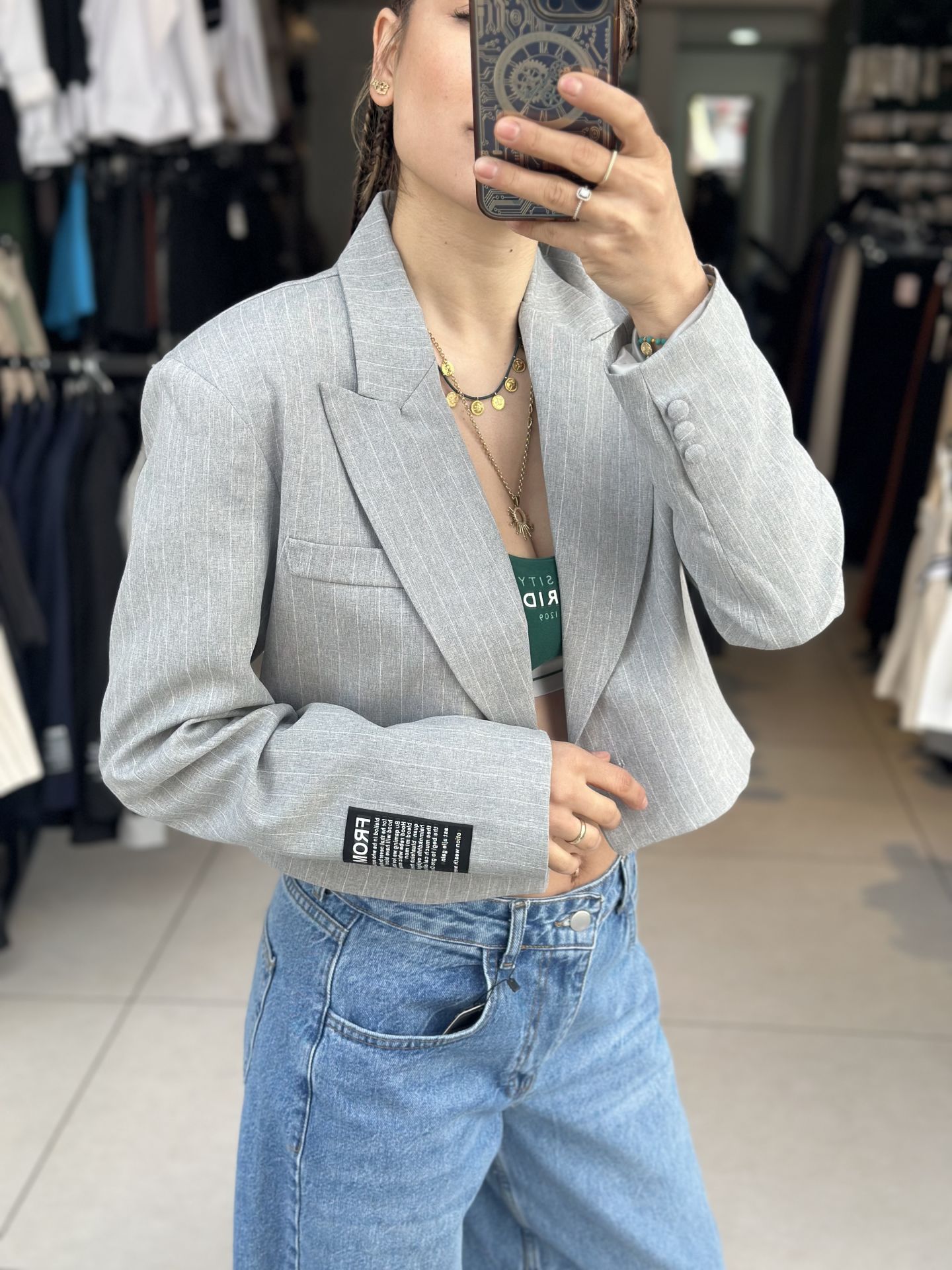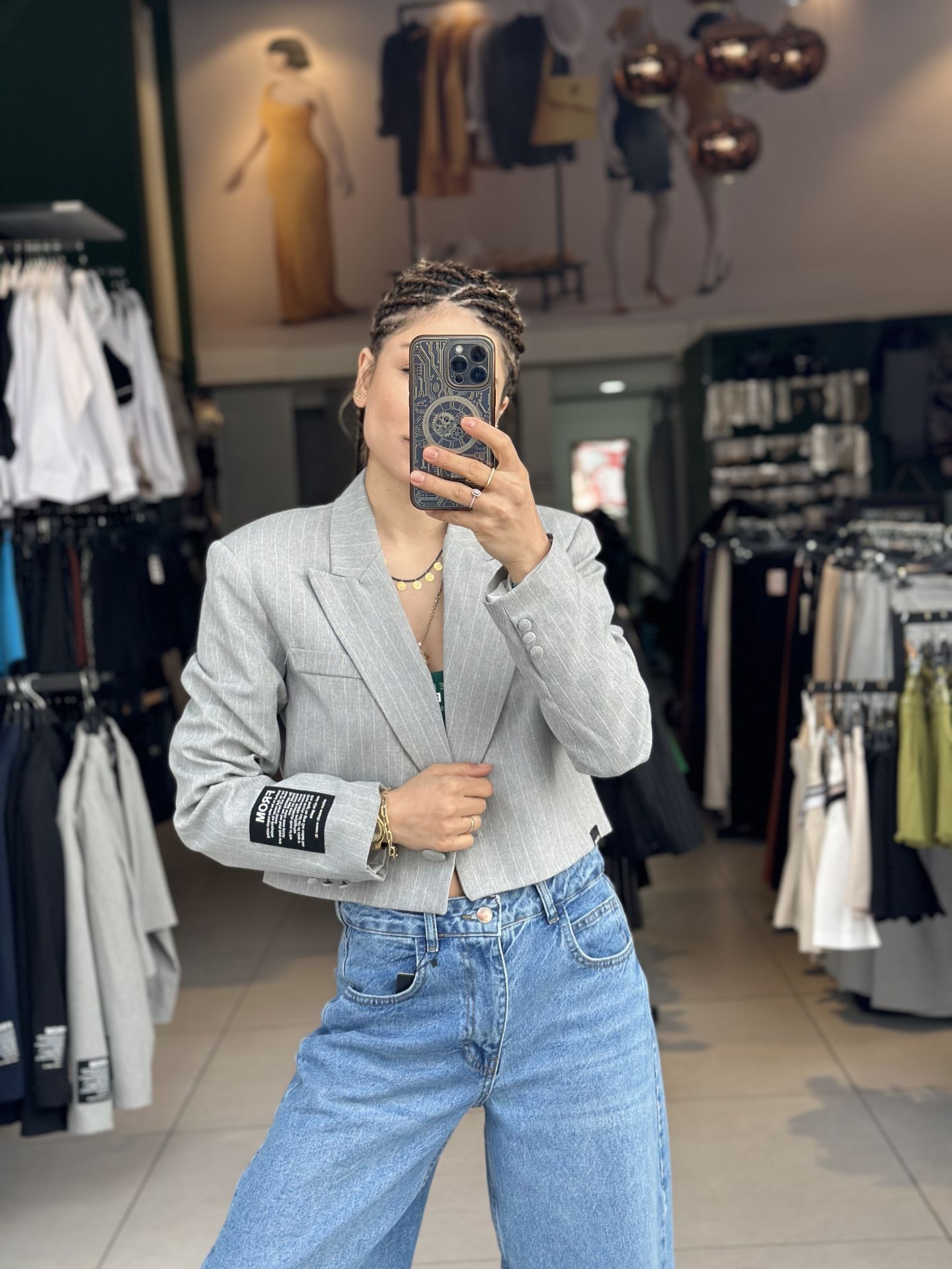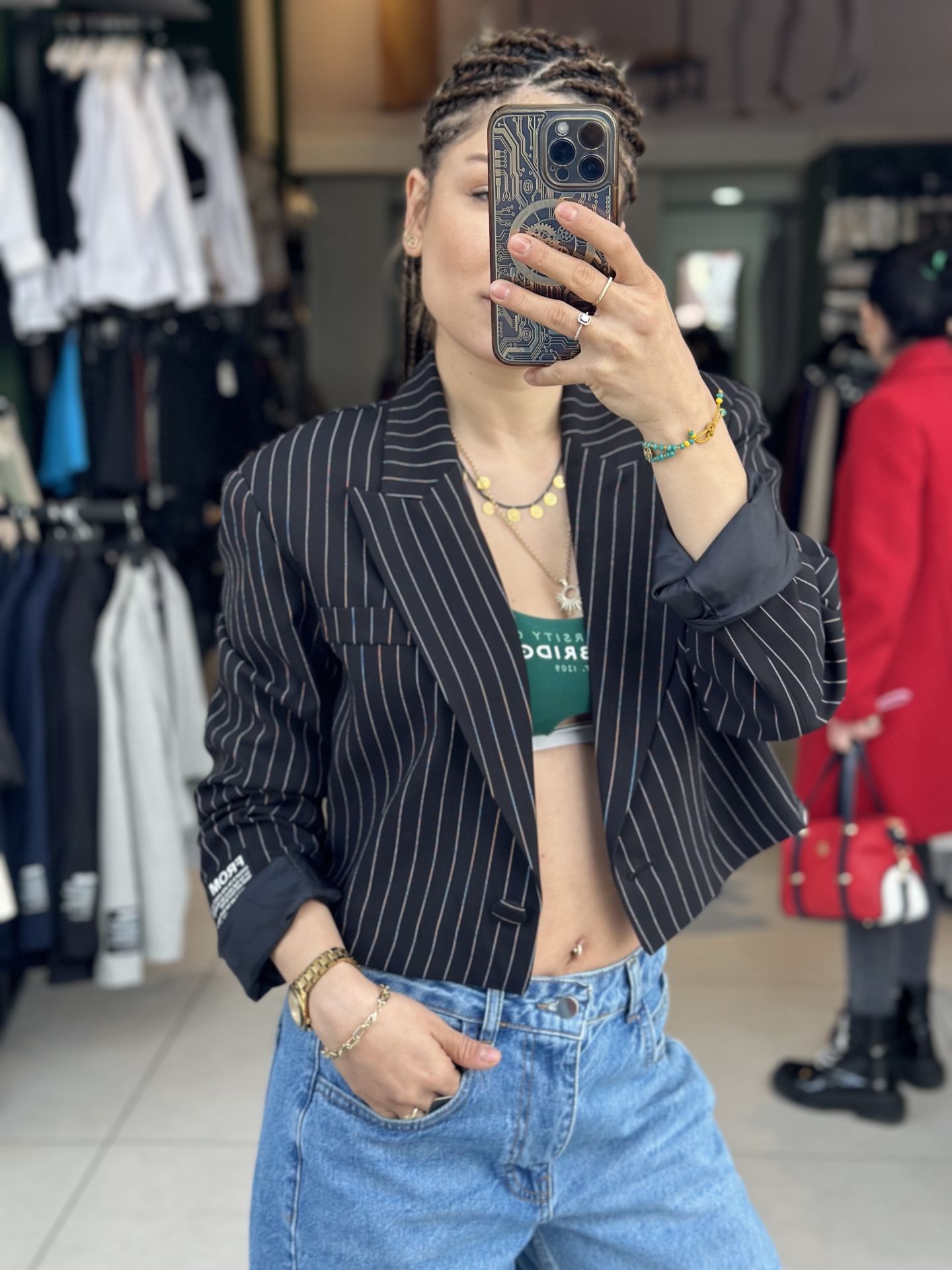 Kisa Çizgili Blazer Ceket.Kisa Çizgili Blazer Ceket
