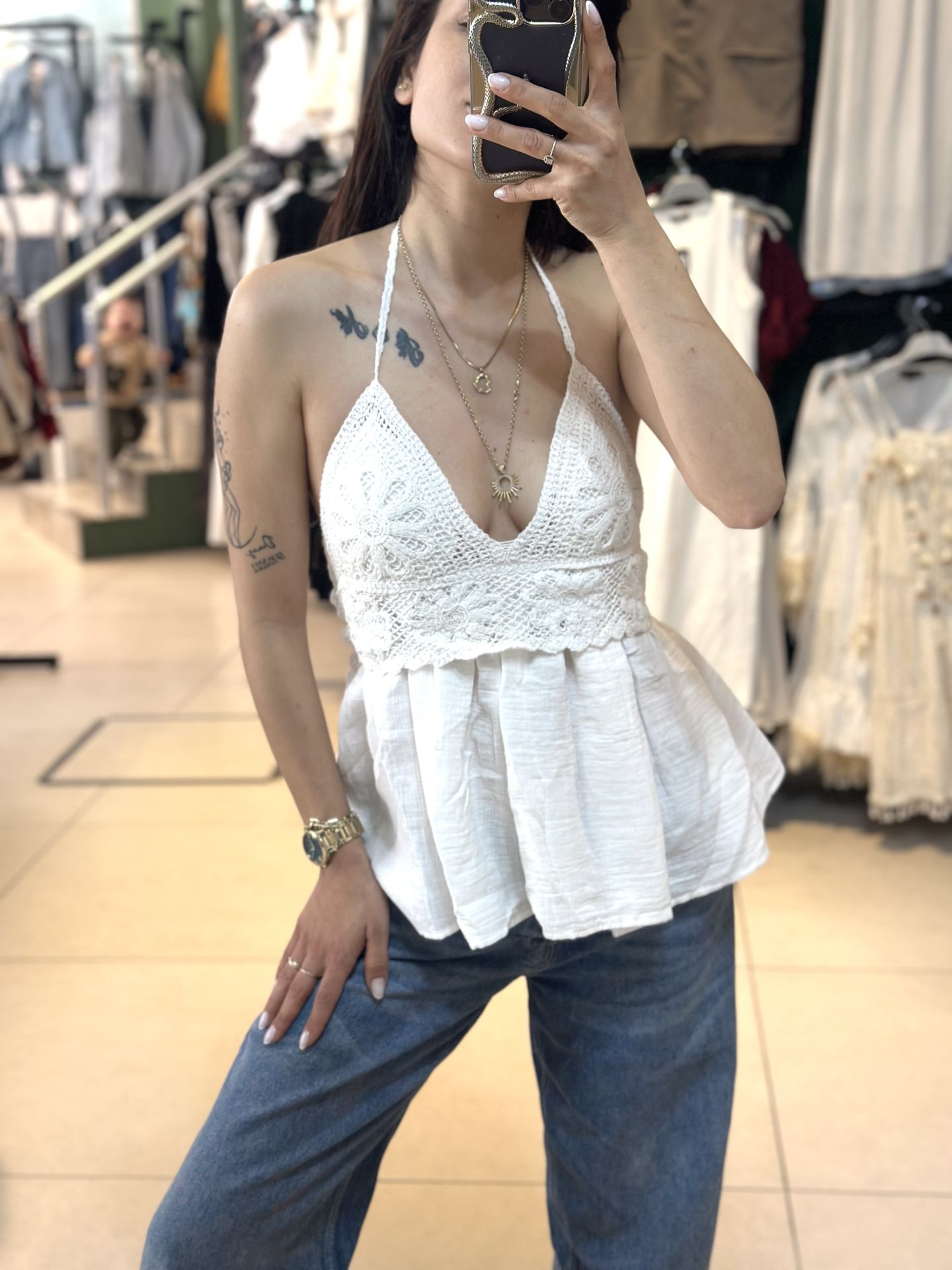 Bu şık ve modern kroşe detaylı bluz, hem günlük giyimde hem de özel günlerde rahatlıkla tercih edebileceğin bir parça. İnce kroşe işlemeli detaylarıyla dikkat çekerken, hafif ve nefes alabilen kumaşıyla da konfor sunar. Gardırobuna şıklık katacak bu bluzu her kombinle rahatlıkla kullanabilirsin.