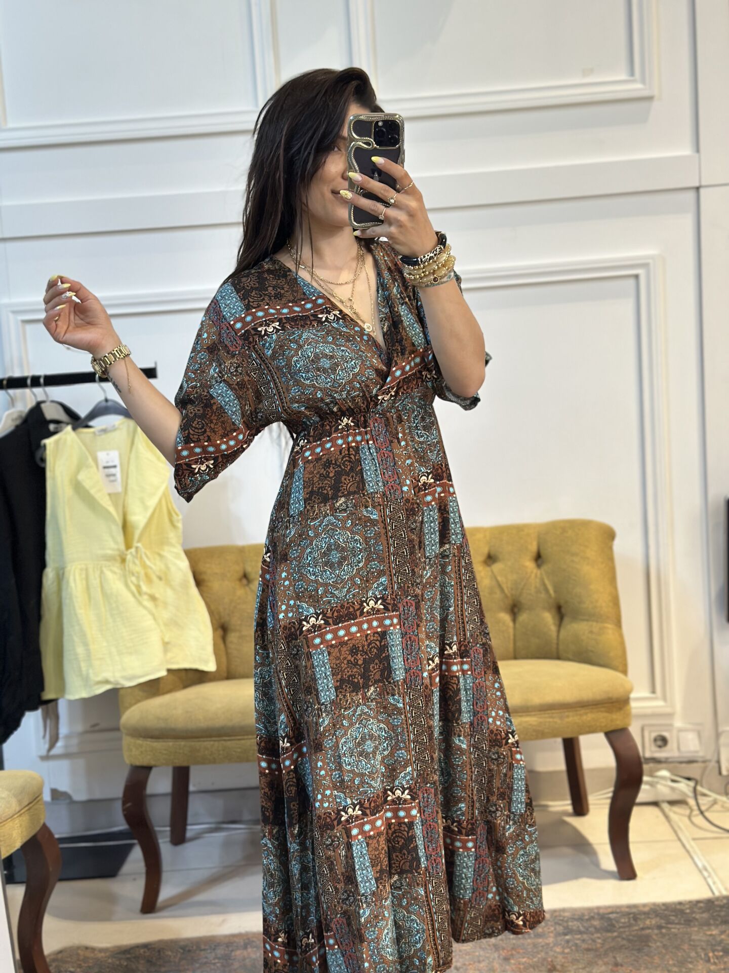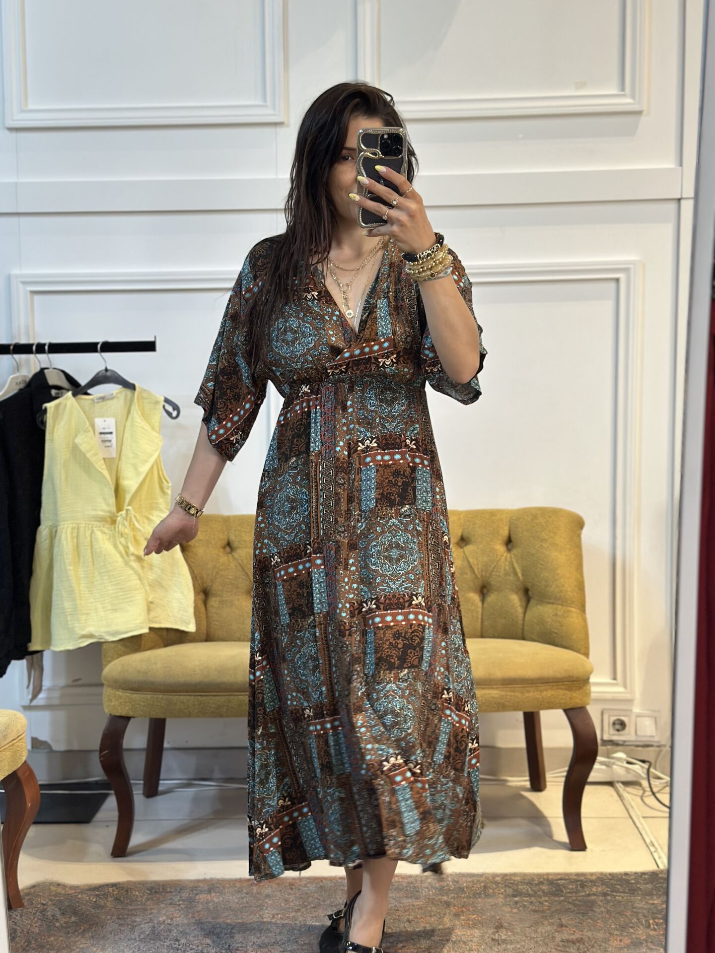 Bu desenli viskon elbise, hem şık hem de rahat bir görünüm sunuyor. Yumuşak viskon kumaşıyla gün boyu konfor sağlarken, desenli tasarımıyla da dikkat çekici bir görünüm sunuyor. Günlük kullanıma uygun olan bu elbise, herhangi bir güne özel bir dokunuş katıyor. Gardırobunuzun vazgeçilmezi olmaya aday!
