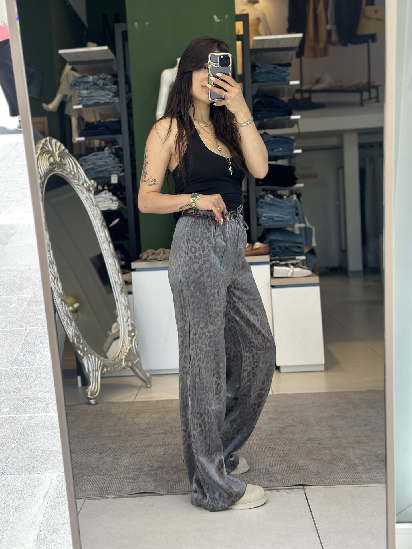 Bu leopar desenli pantolon, şıklığı ve modernliği bir araya getiriyor. Yüksek bel tasarımı ve vücudu saran kesimi ile her bedene uyum sağlıyor. Günlük giyimde ve özel günlerde rahatlıkla tercih edebileceğiniz bir parça. Farklı kombinlerle kolayca uyum sağlayan bu pantolon, gardırobunuzun vazgeçilmezi olacak!