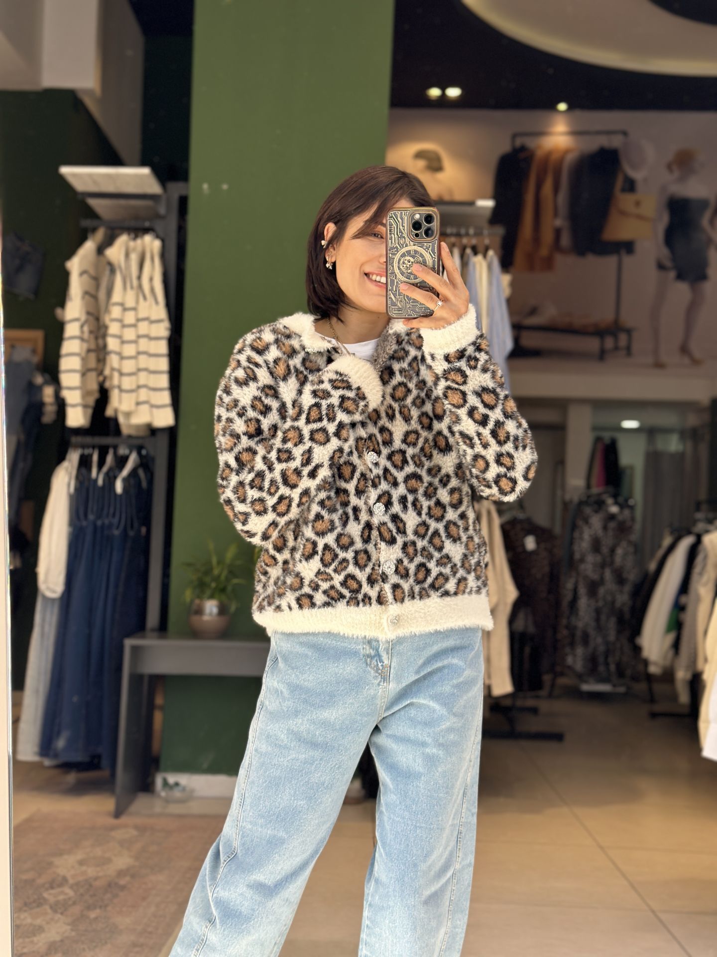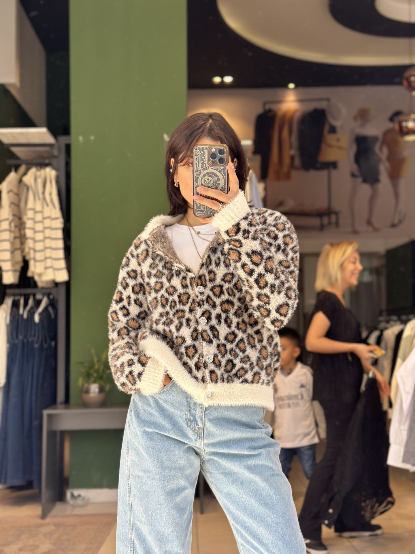 Leopar Desen Sakalli Ceket.Leopar Desen Sakalli Ceket