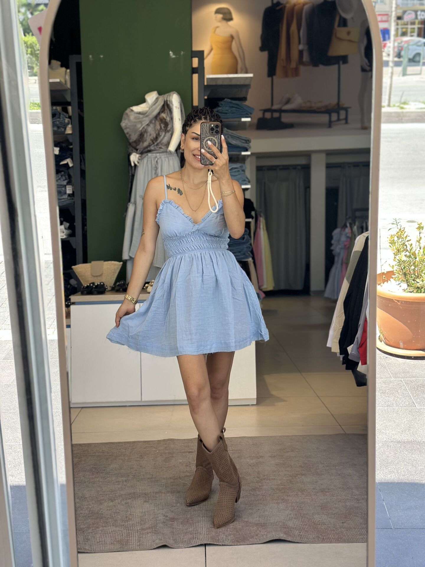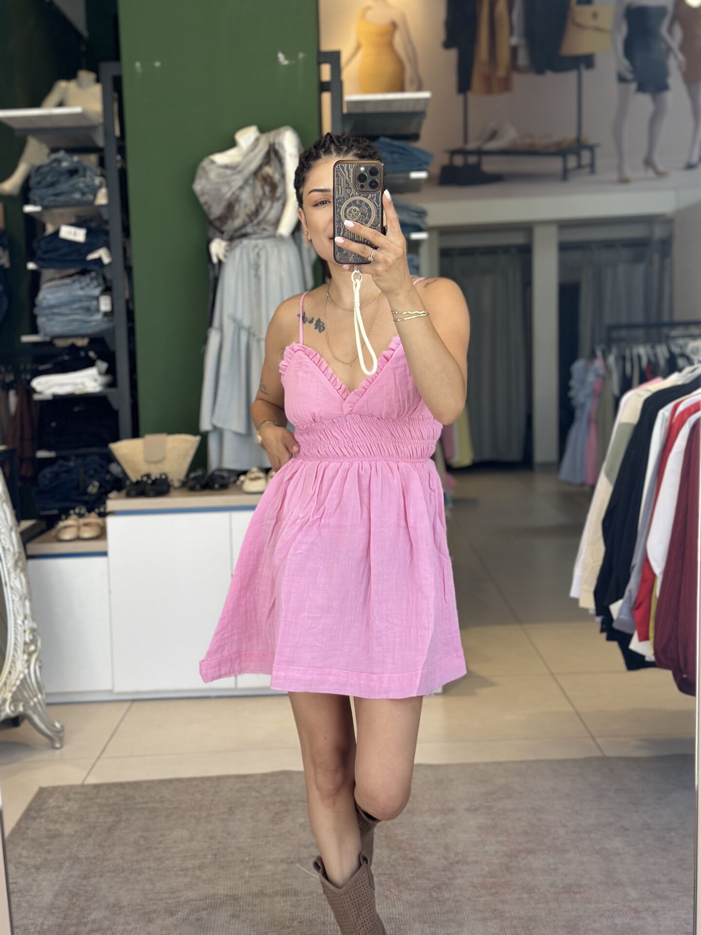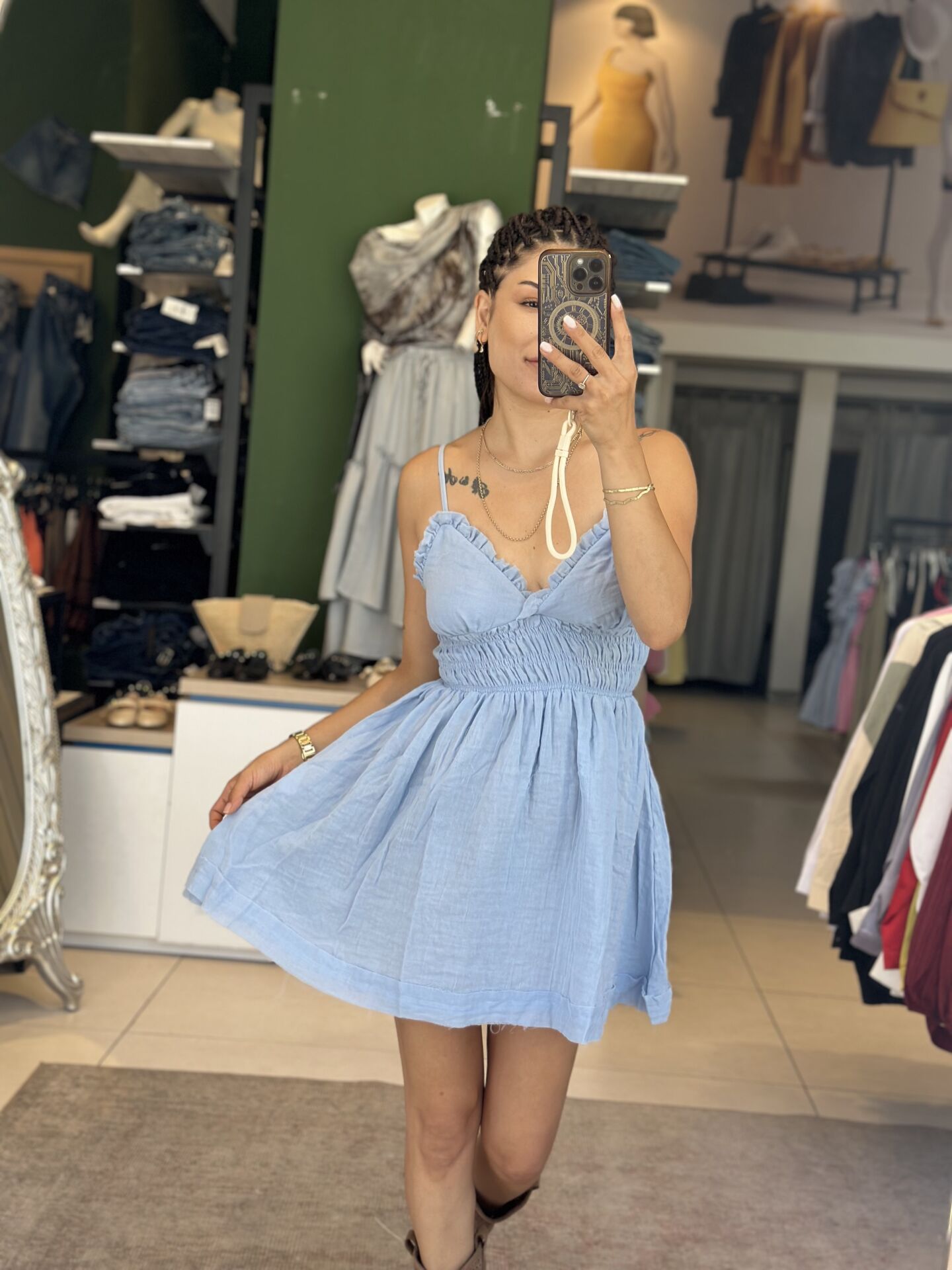Bu pamuklu, hafif ve rahat askılı müslin elbise, yaz aylarında şıklığı ve konforu bir arada sunar. Zarif ve havalı tasarımıyla her türlü günlük etkinlik için ideal bir seçenektir. Sade ve şık detaylarıyla dikkat çeker ve her vücut tipine uyum sağlar. Beach partilerinden şehir gezintilerine kadar her ortamda tarzınızı yansıtmanızı sağlar.