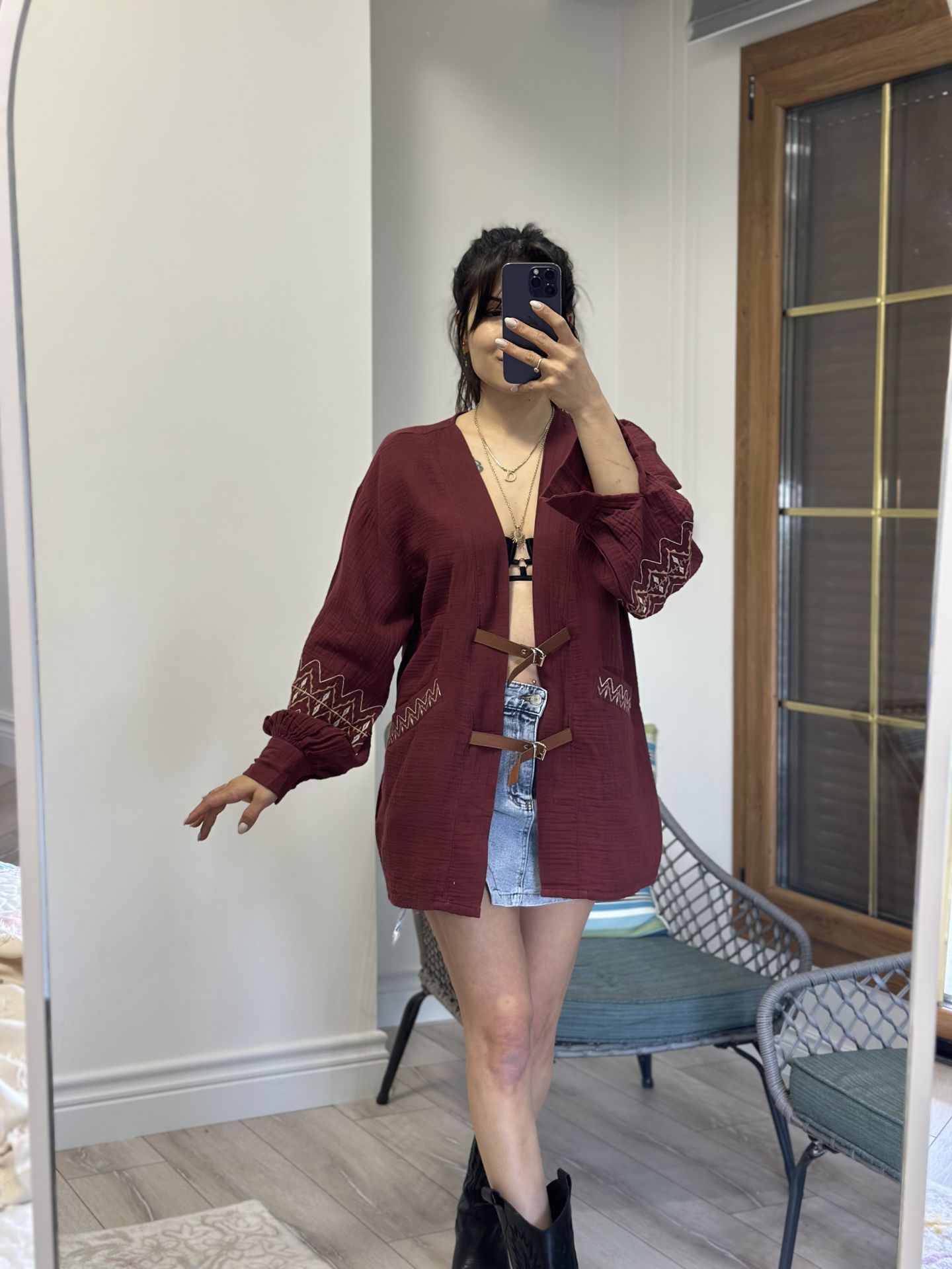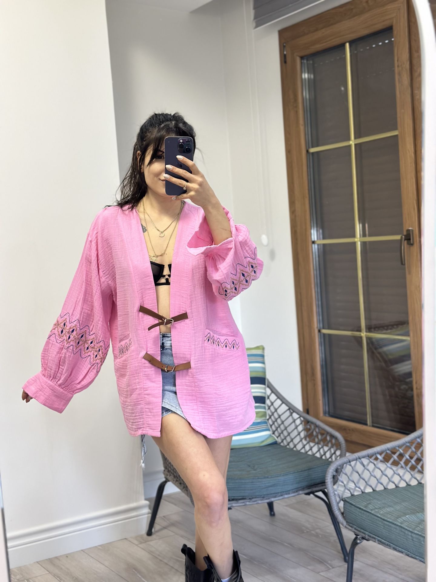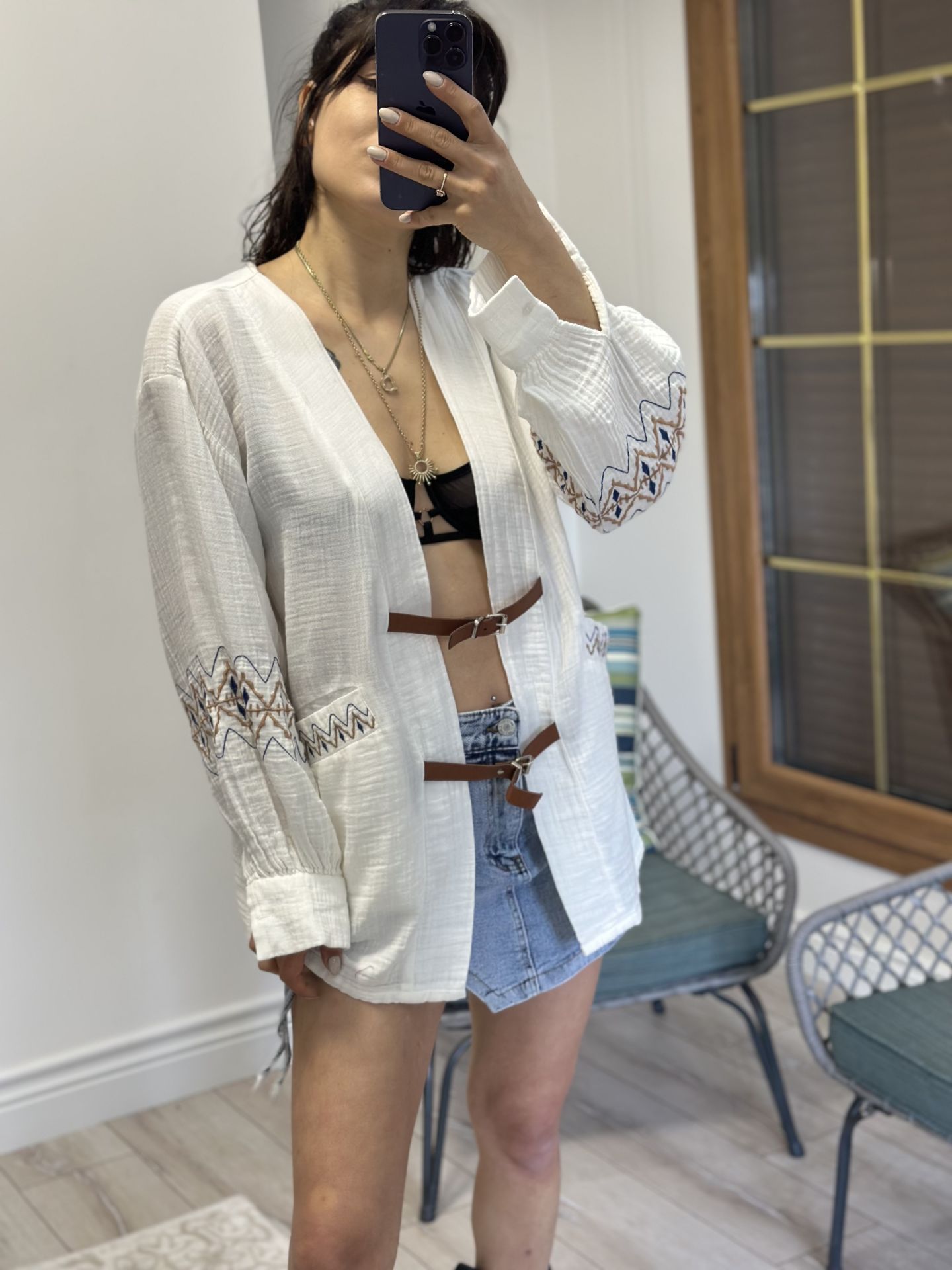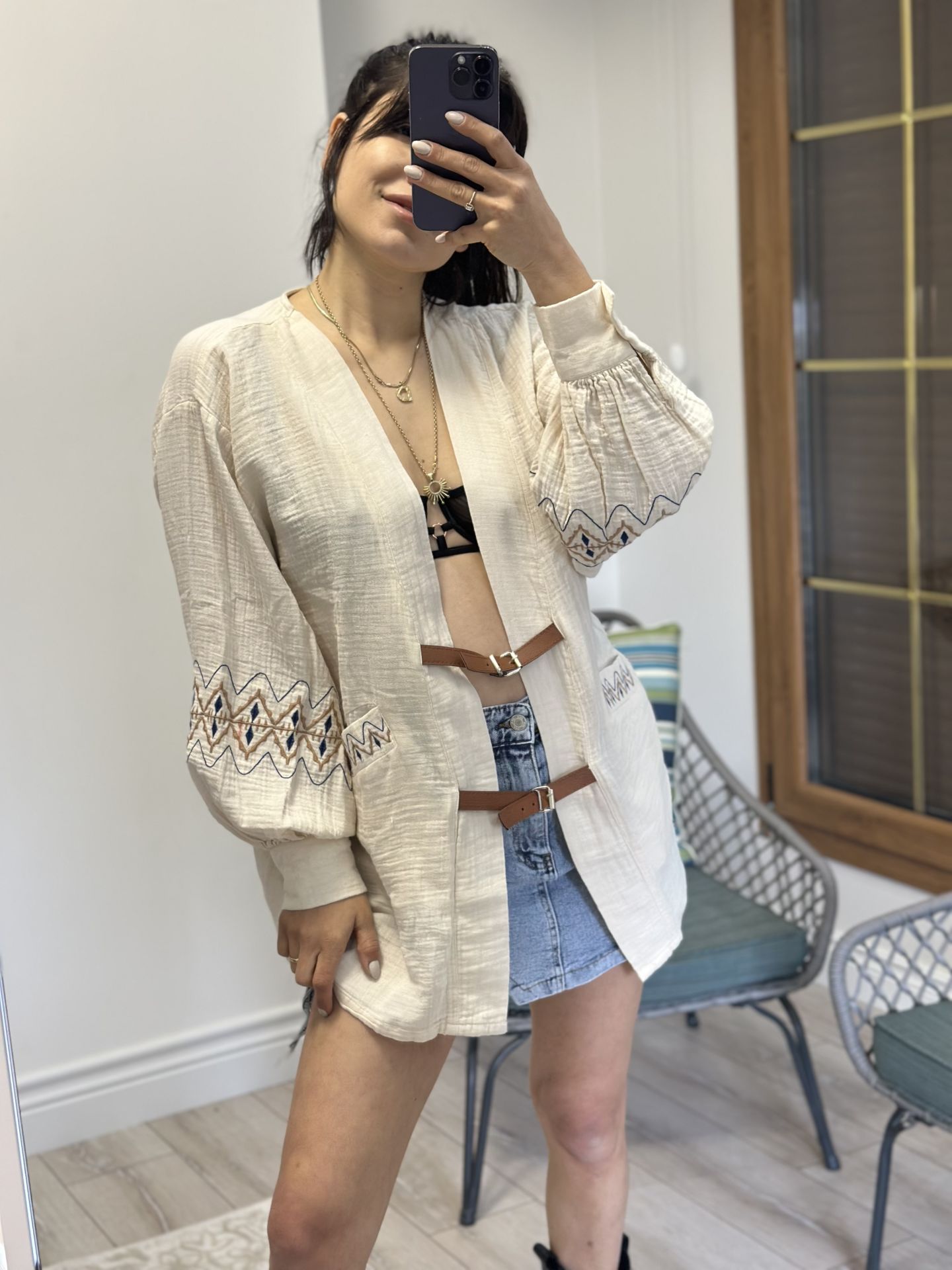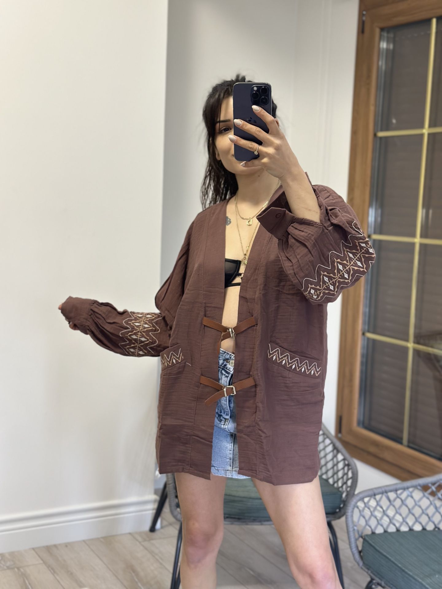 Bu muhteşem kemer detay keten kimono, zarif ve şık bir görünüm sunar. Yaz aylarında rahatlıkla giyebileceğiniz hafif ve nefes alabilir bir kumaşa sahiptir. İster plajda ister günlük kullanımda tercih edebilirsiniz. Stilinize zarif bir dokunuş katmak istiyorsanız, bu kimono tam size göre!