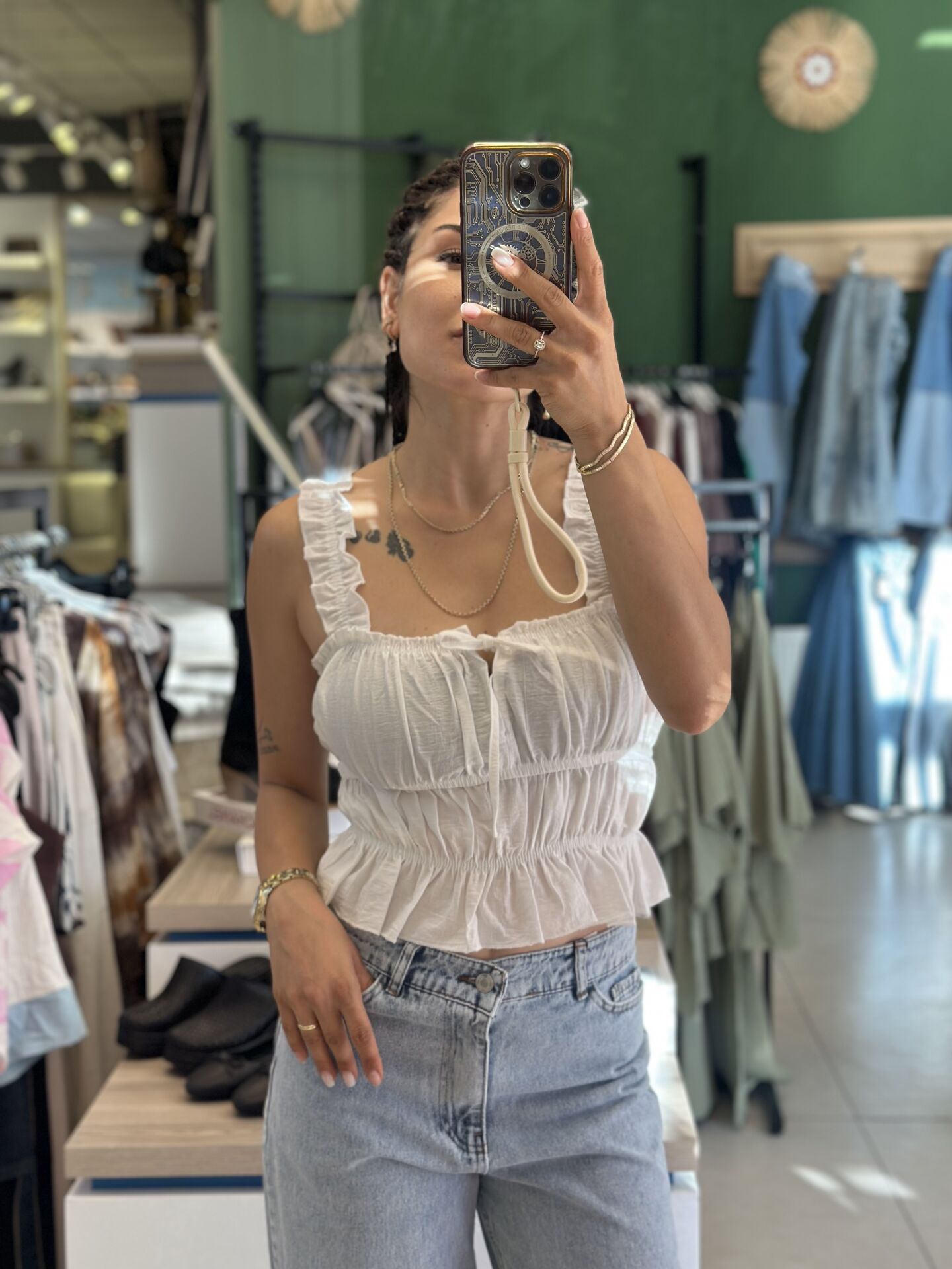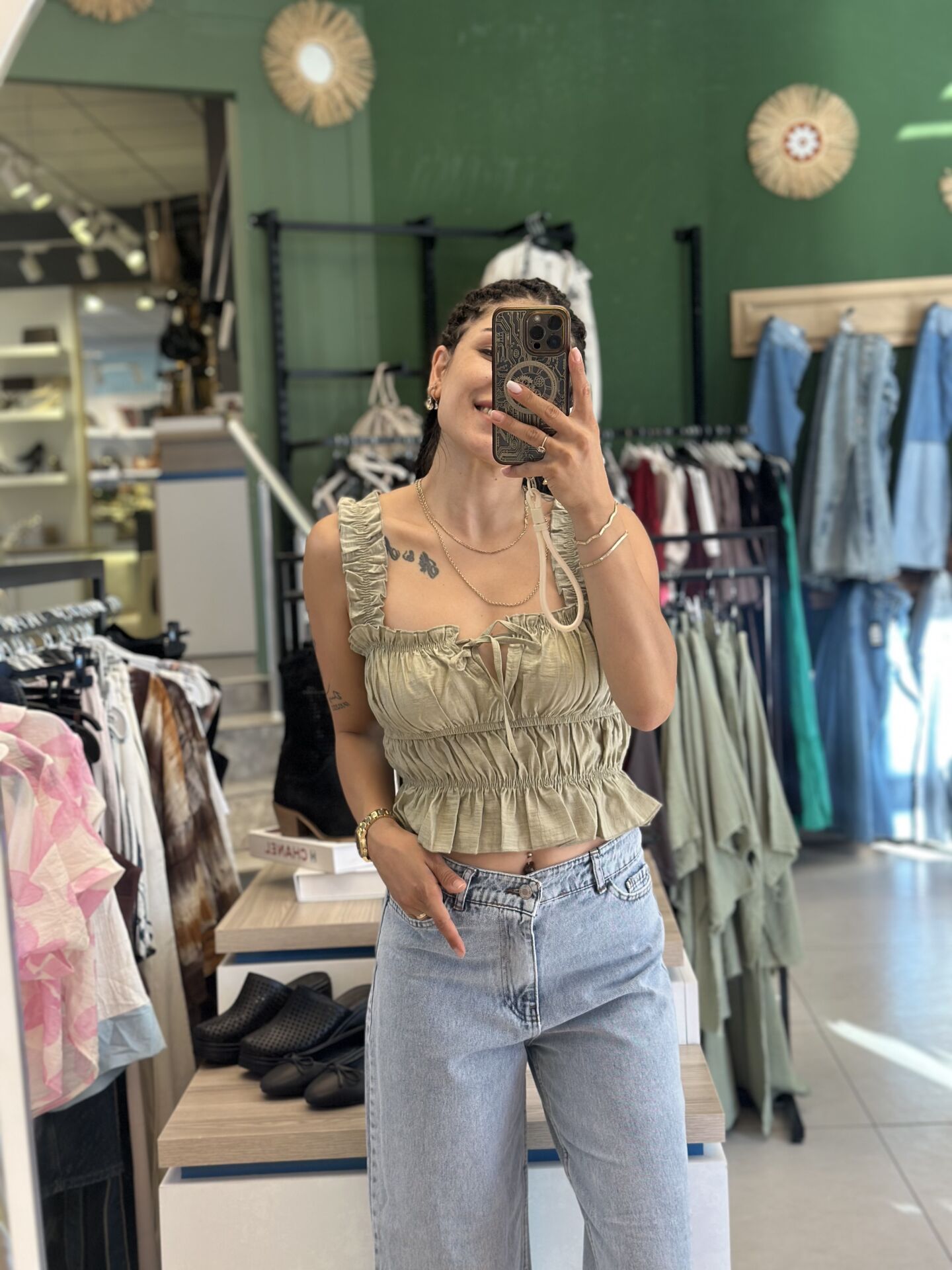 Bu önü büzgülü bluz, şıklığı ve rahatlığı bir arada sunuyor. Yumuşak dokulu kumaşı ve modern tasarımı ile her kombin için ideal bir seçenek. Gündelik kullanımdan özel davetlere kadar her ortamda tarzınızı yansıtacak bir parça. Önü büzgülü detayı, feminen ve zarif bir görünüm sağlarken, vücuda oturan kesimiyle de şıklığı ön plana çıkarıyor.