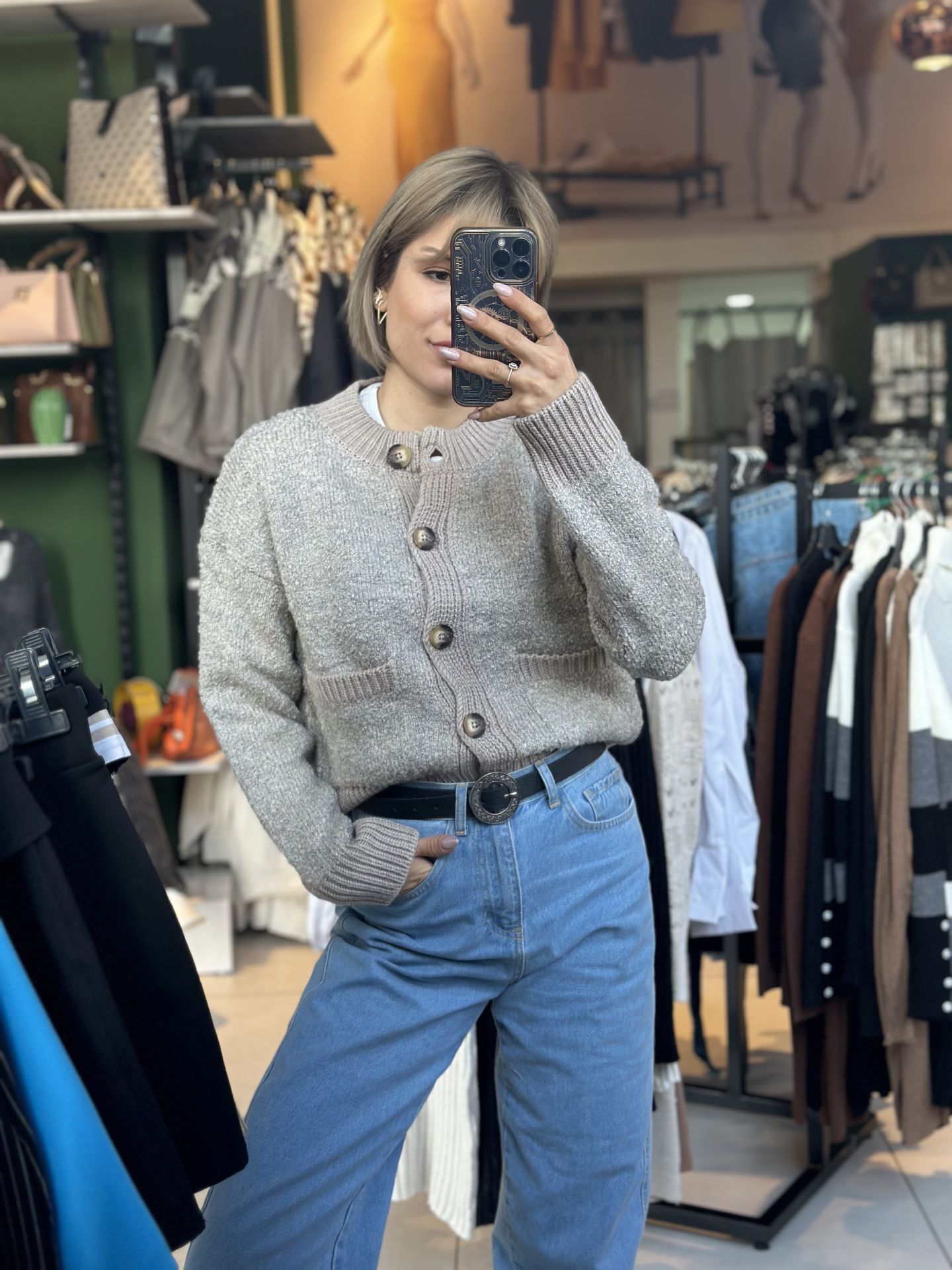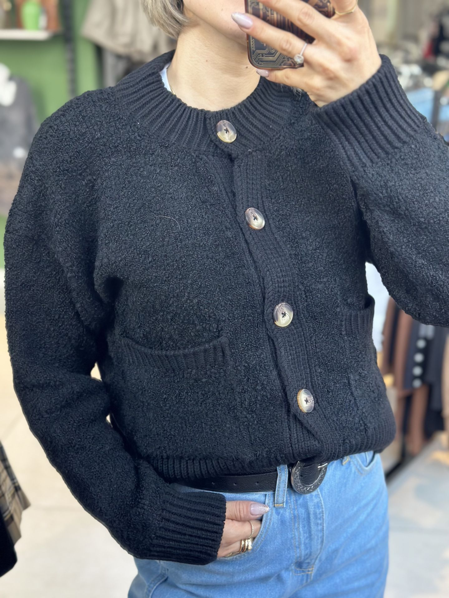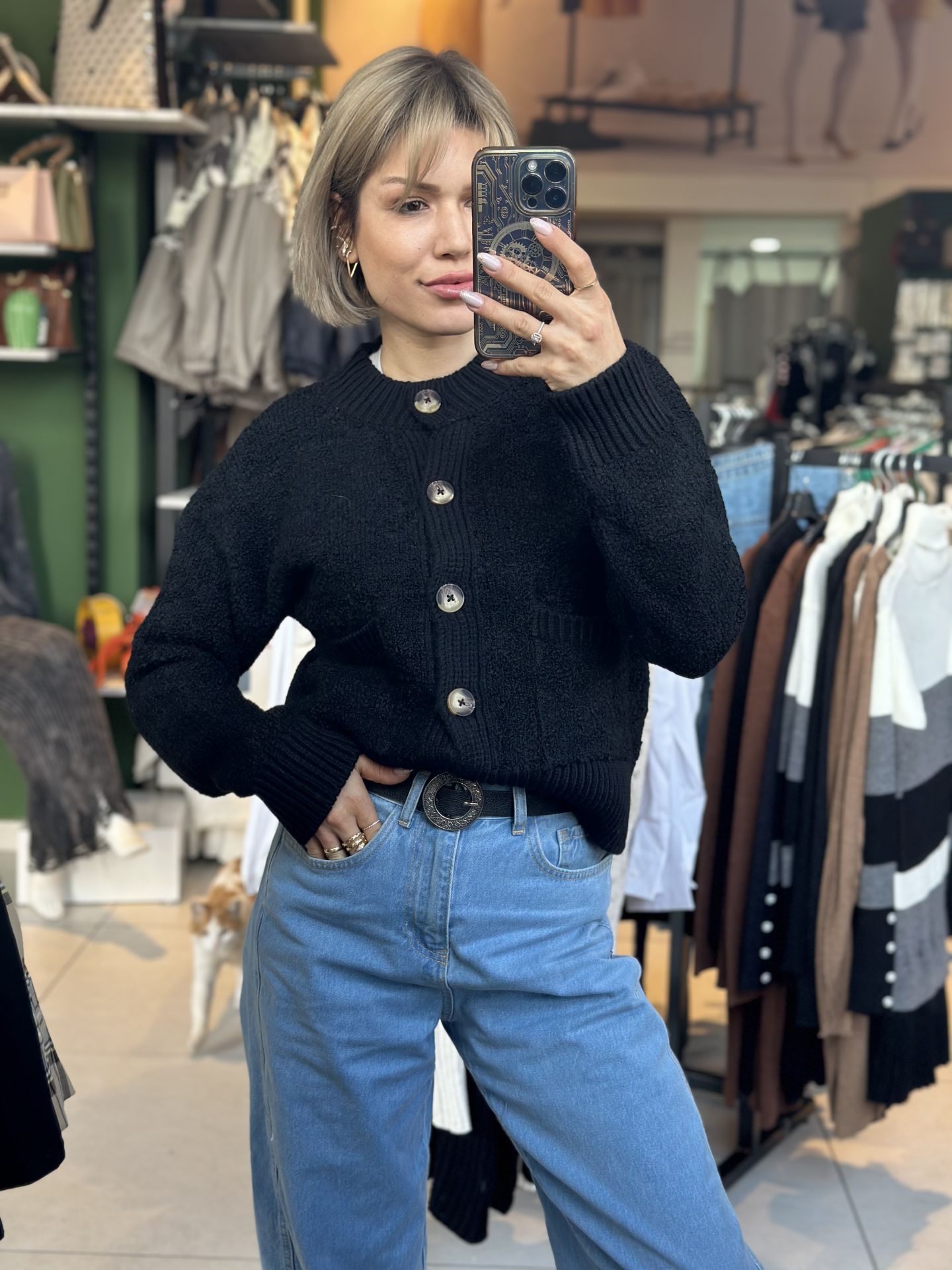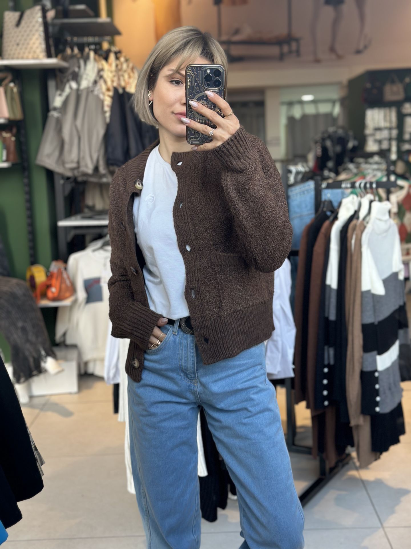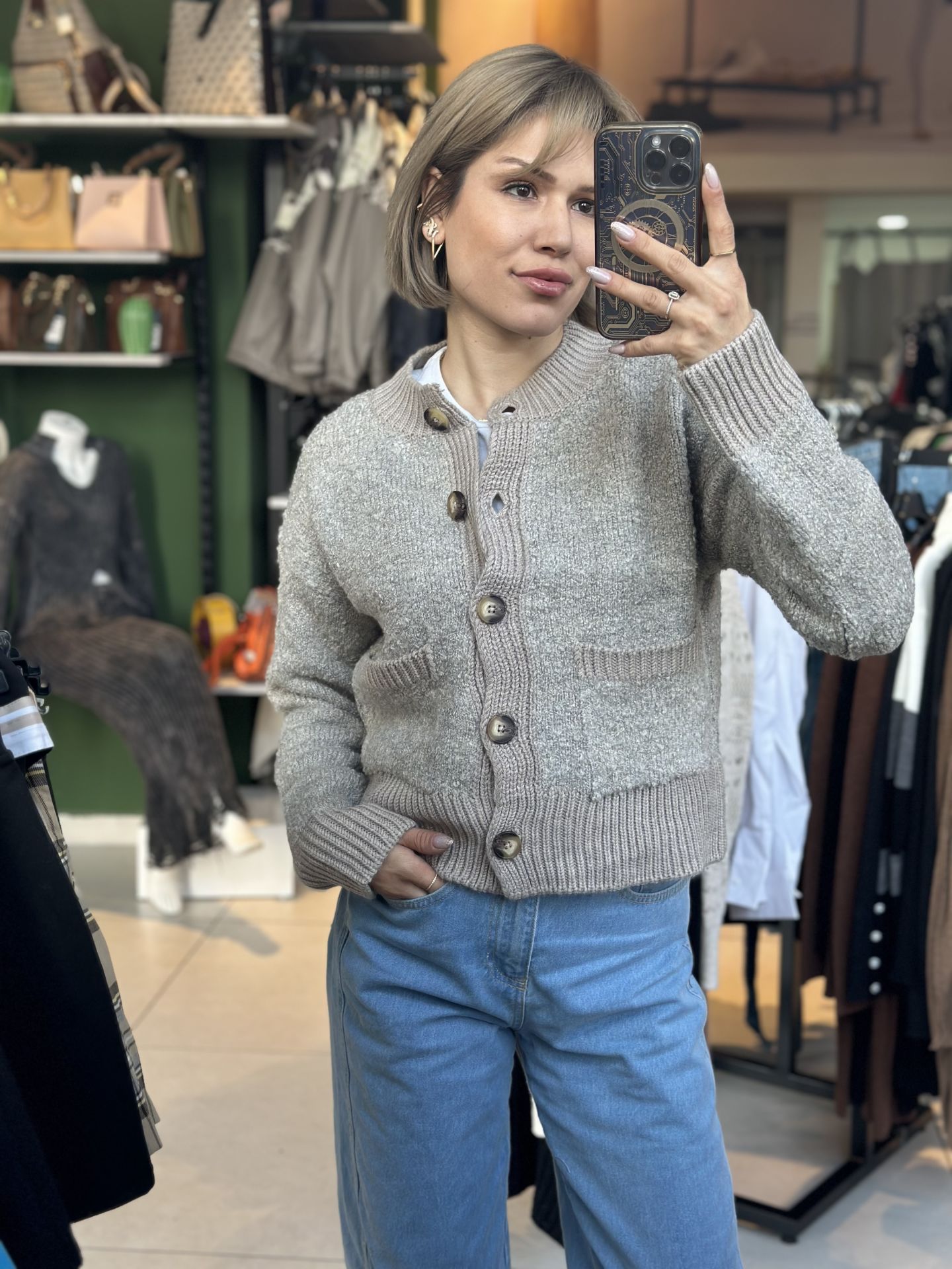 Önü Düğmeli Dokulu Hırka
