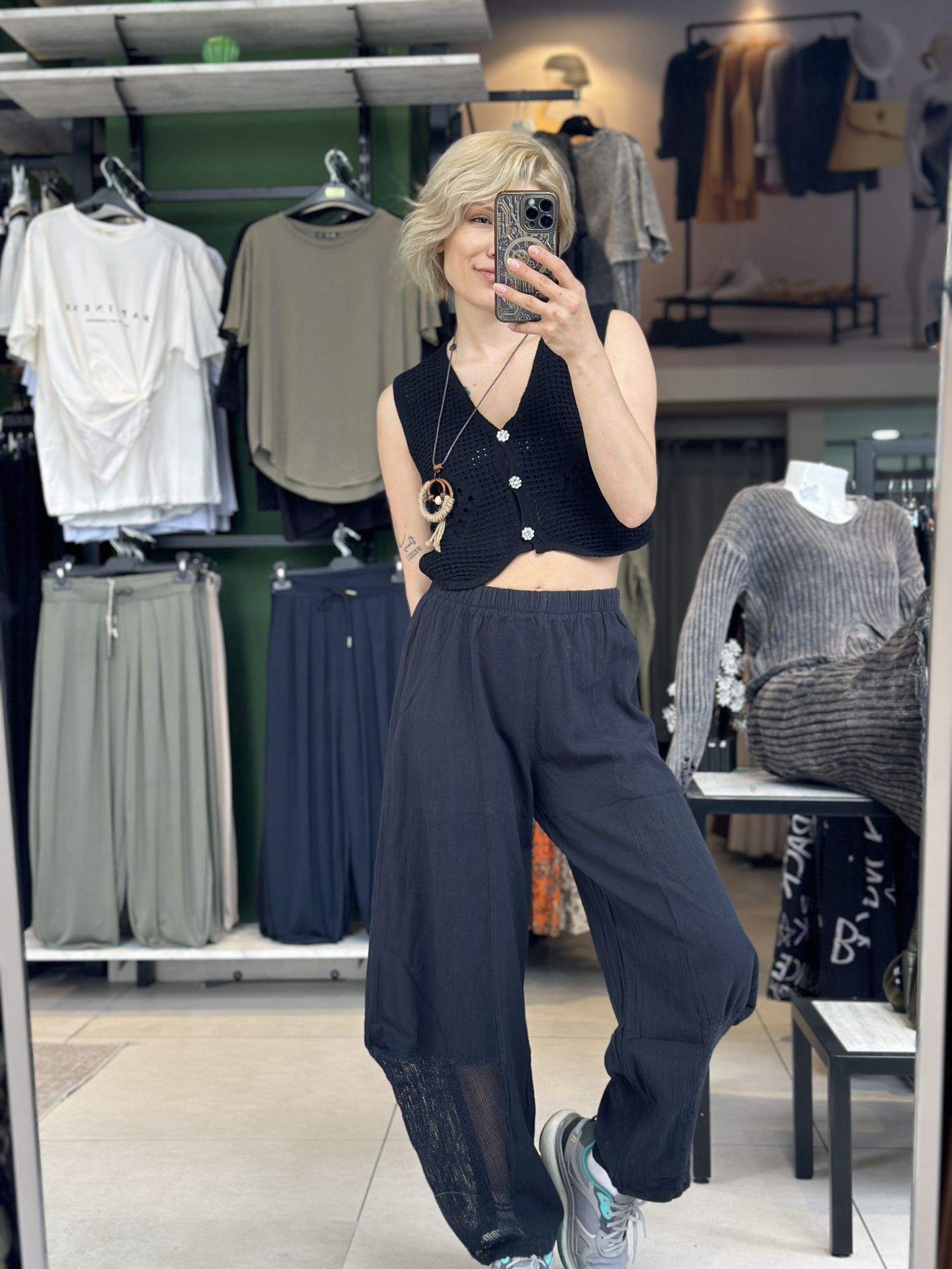 Paça Fileli Keten Pantolon Paça Fileli Keten Pantolon.Paça Fileli Keten Pantolon SCST3377 Paça Fileli Keten Pantolon