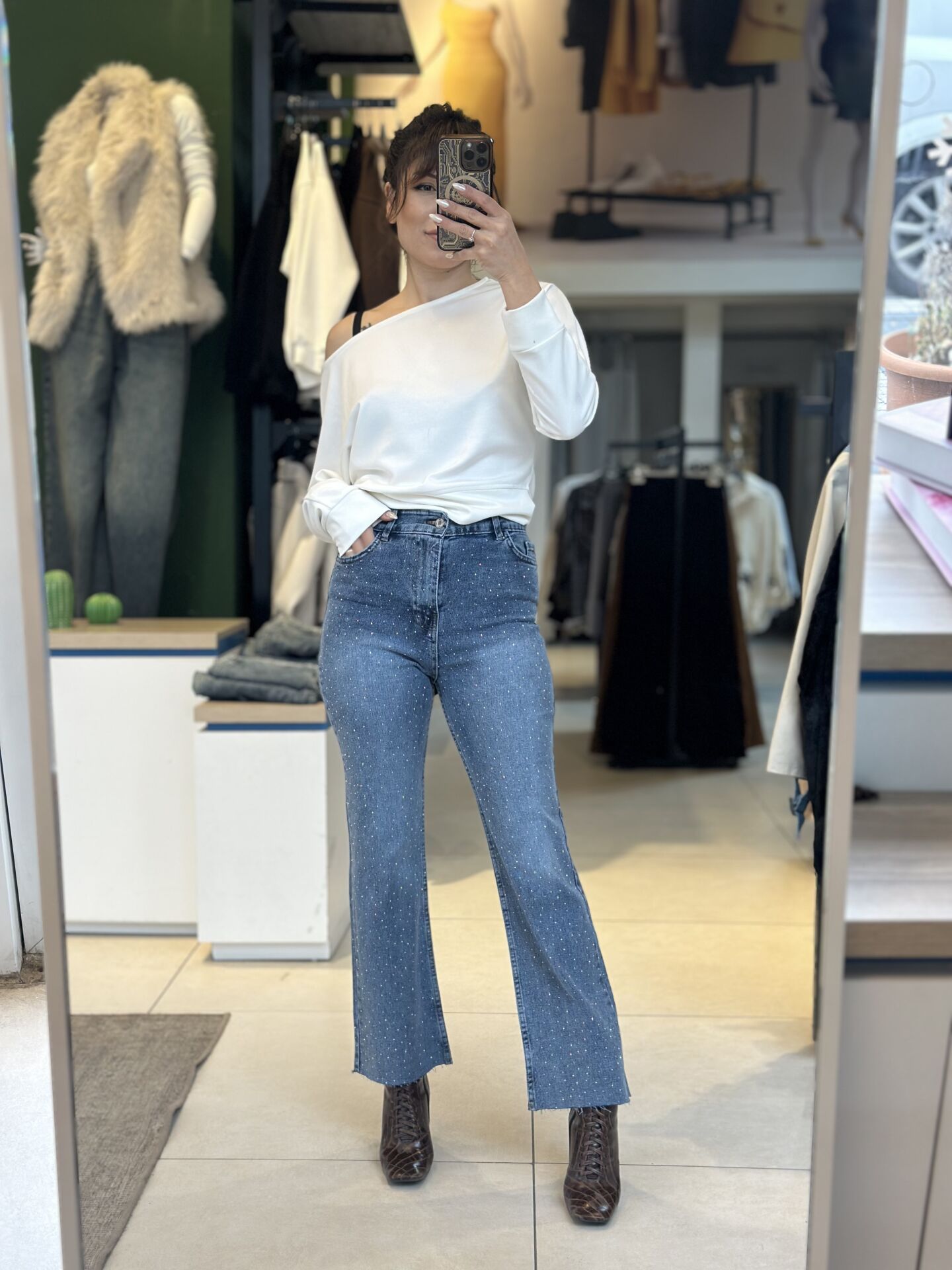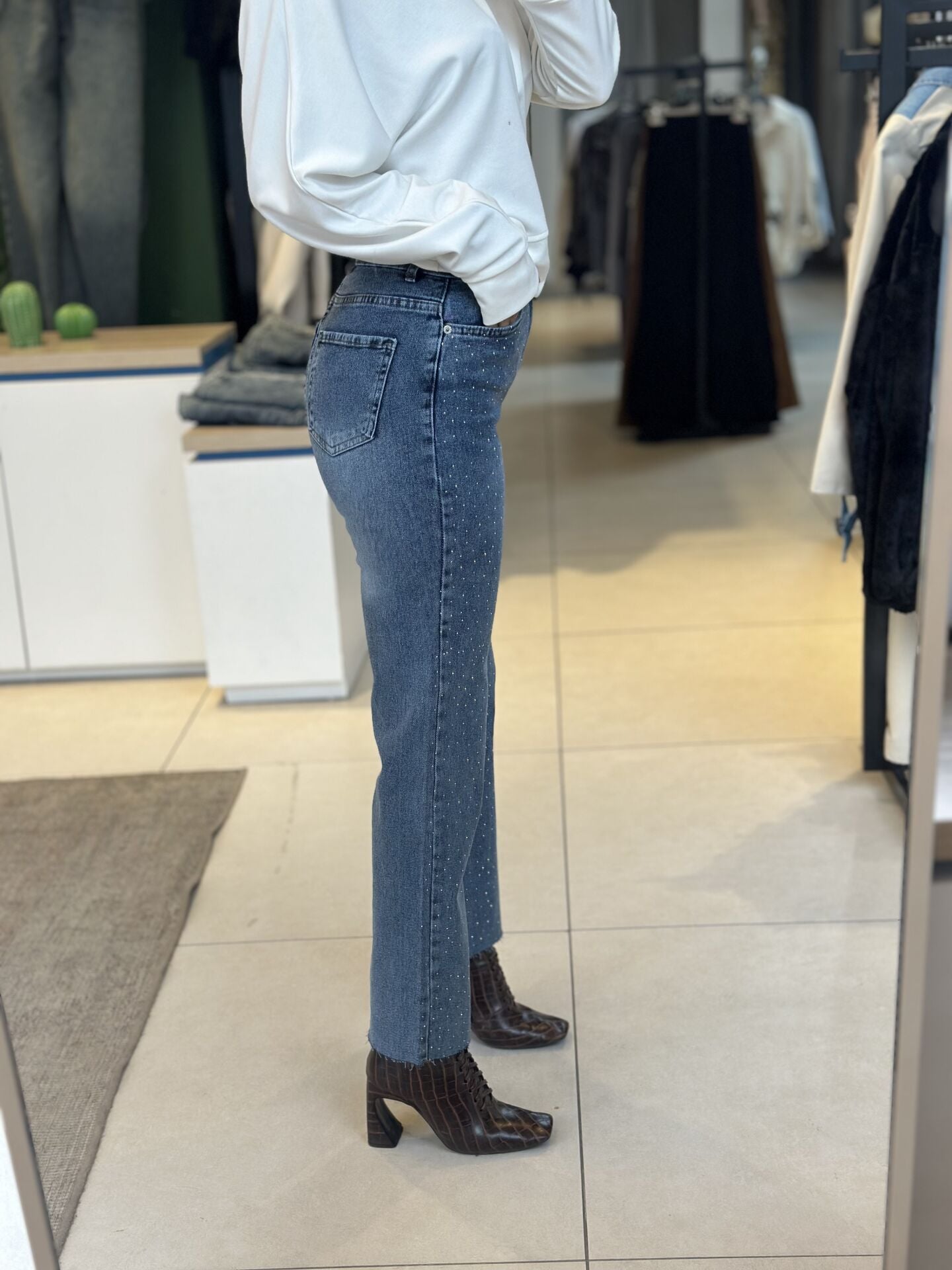 Paça Kesik Taşlı Jean.Paça Kesik Taşlı Jean