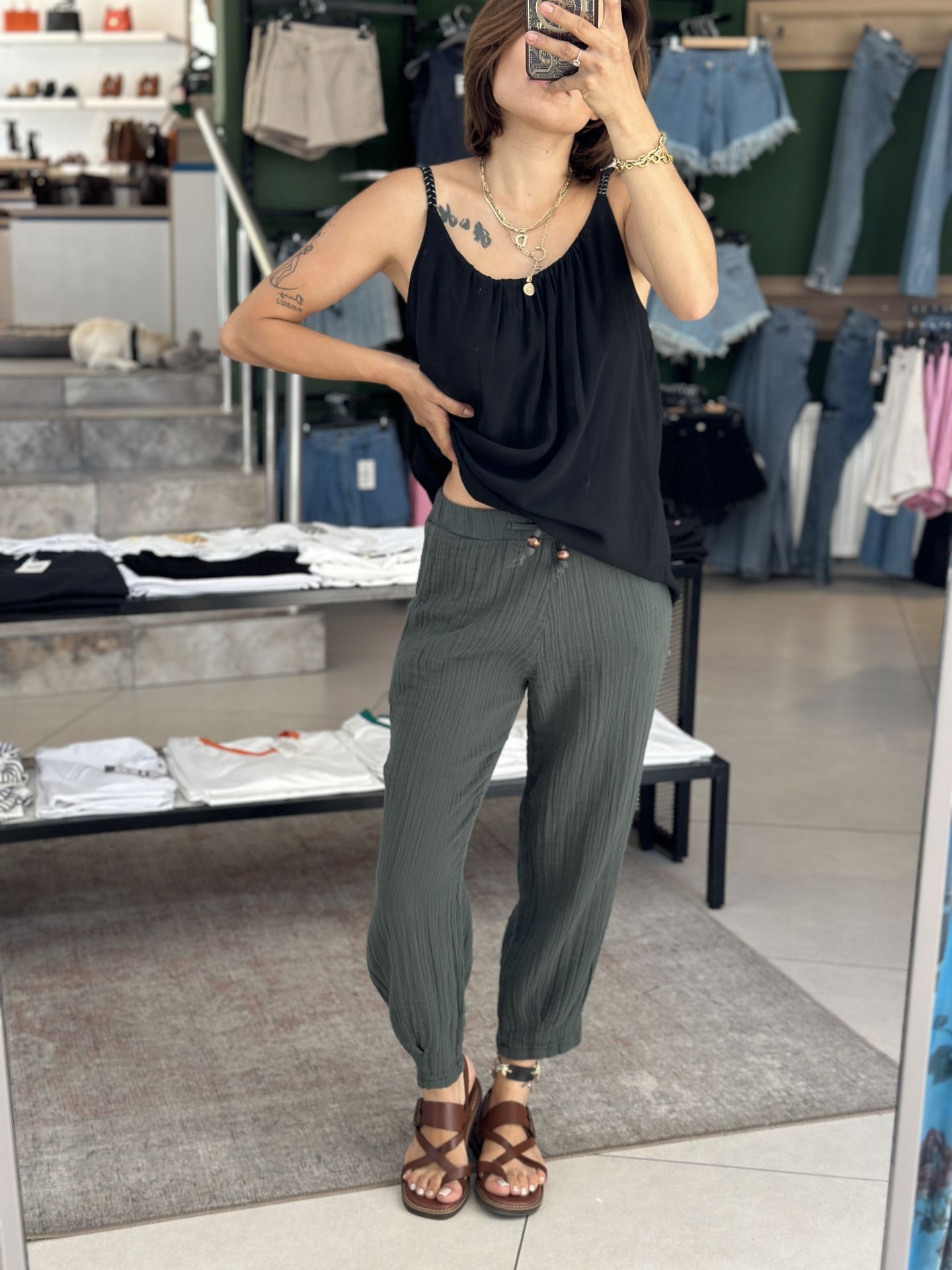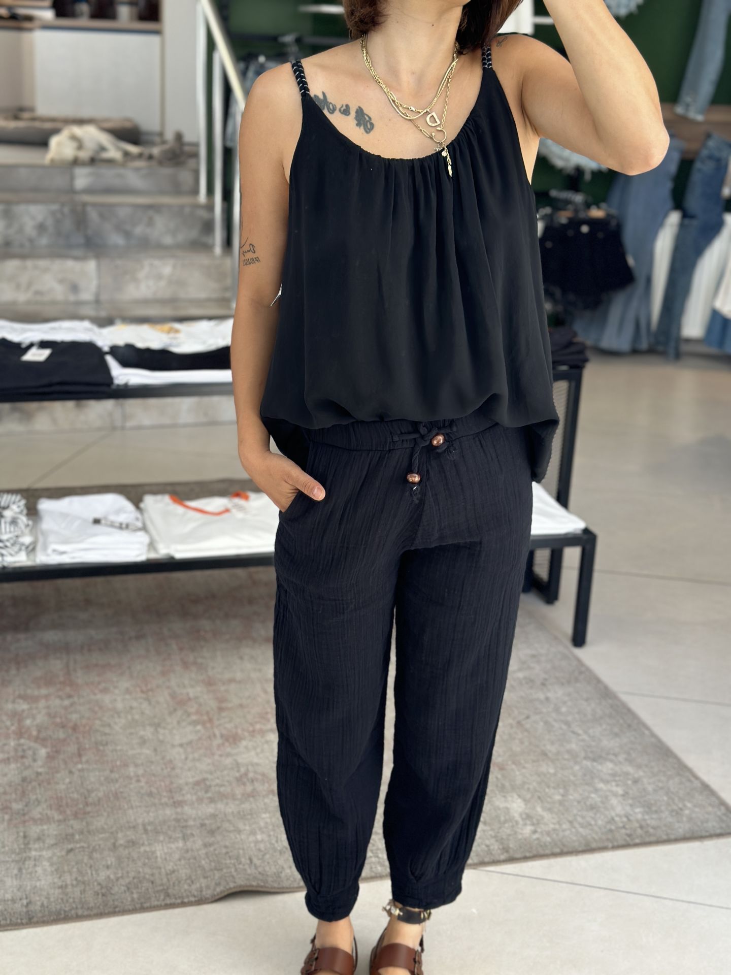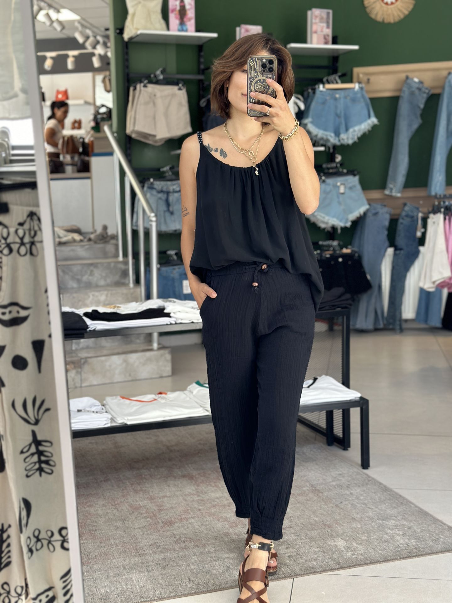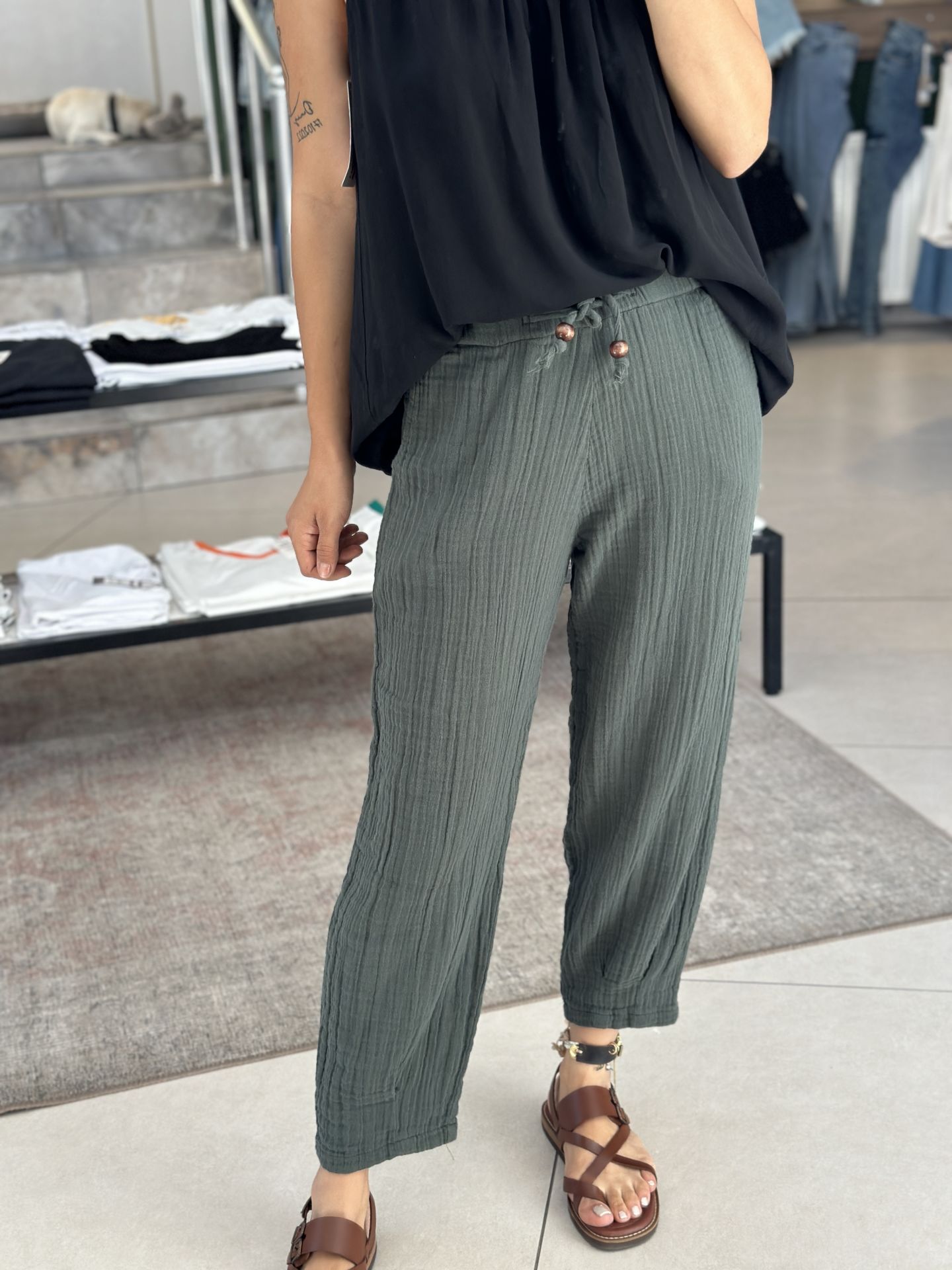 Paça Pensli Müslin Pantolon.Paça Pensli Müslin Pantolon