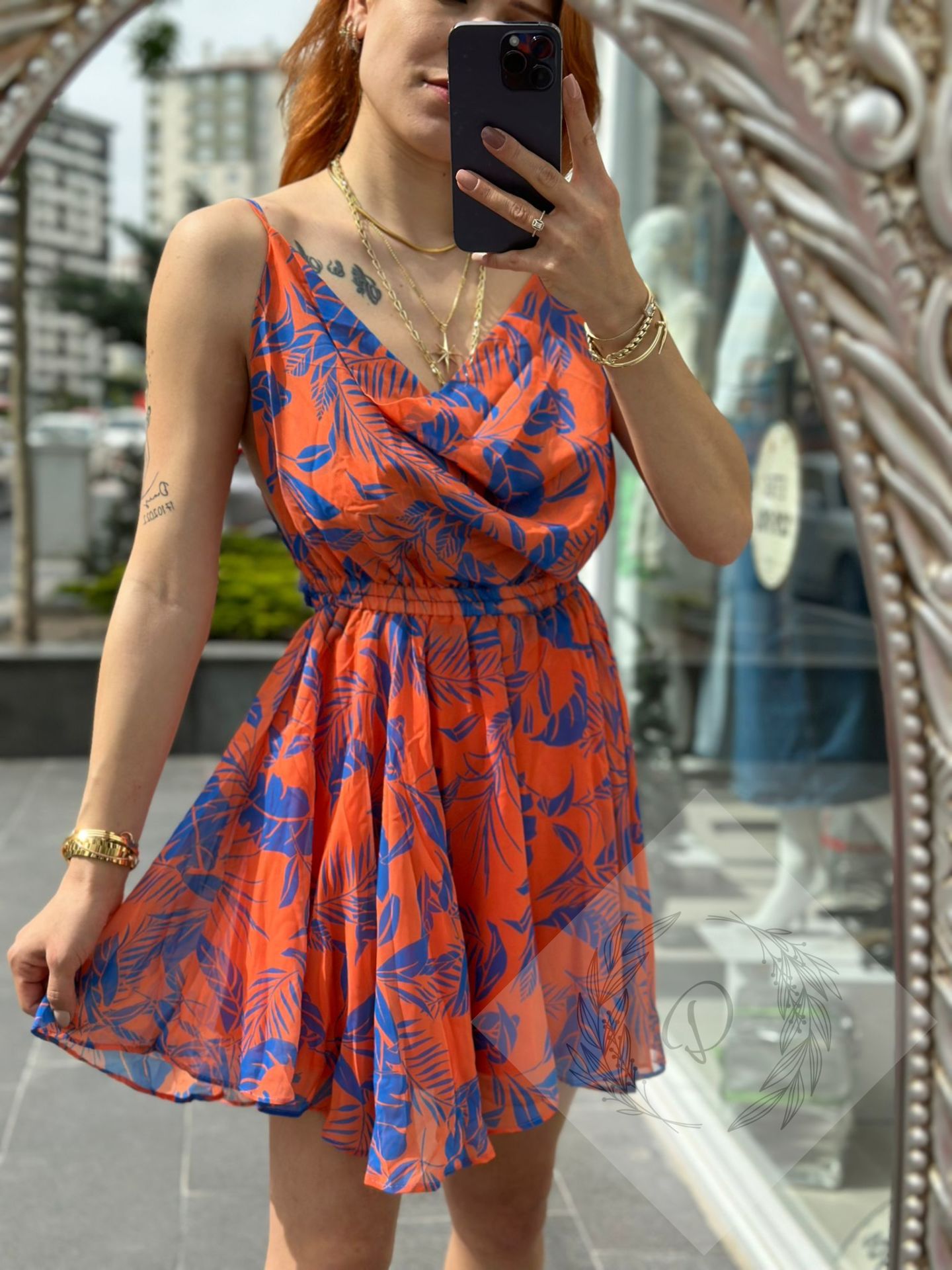 Elbise sırt dekoltelidir.
