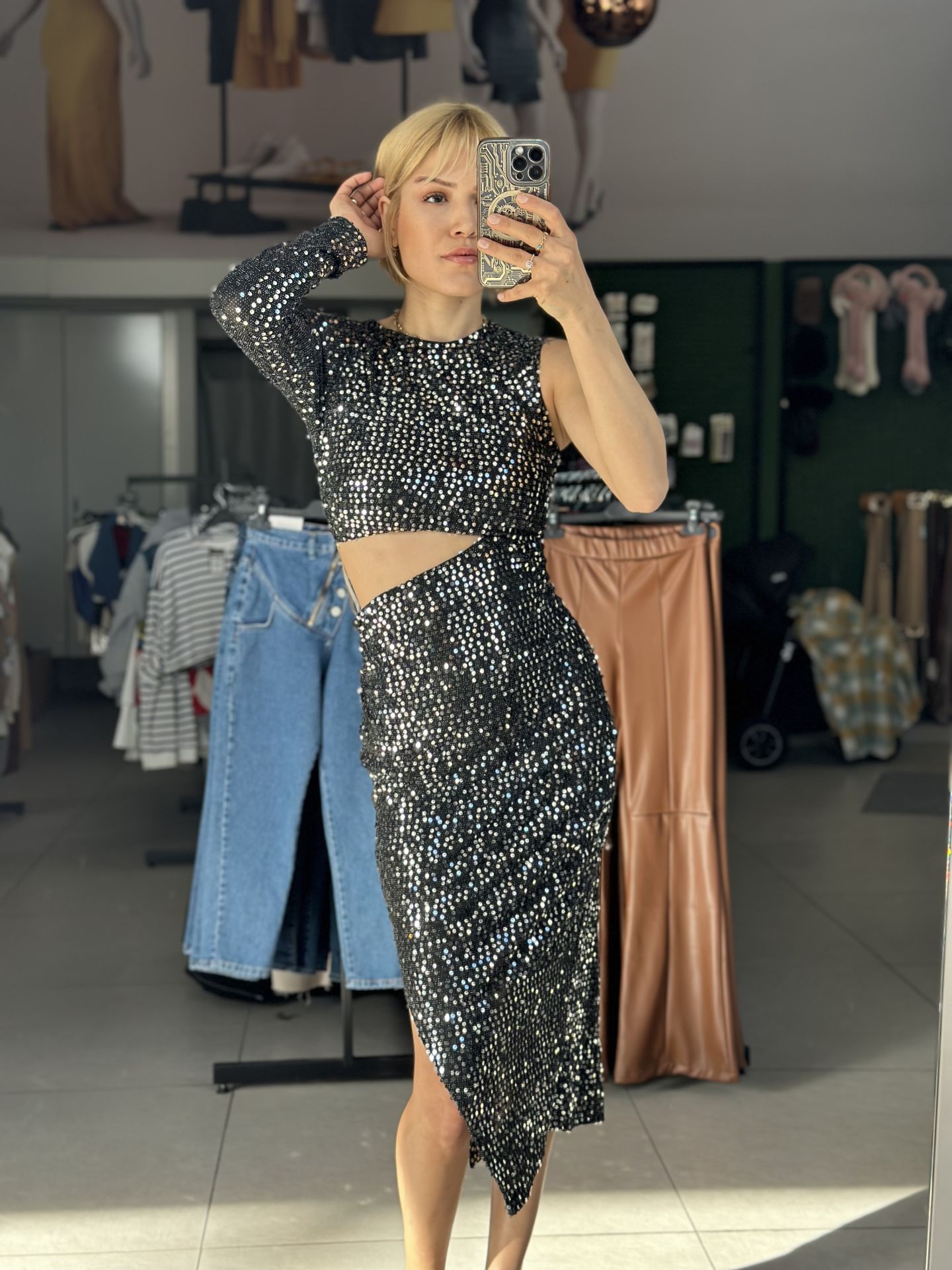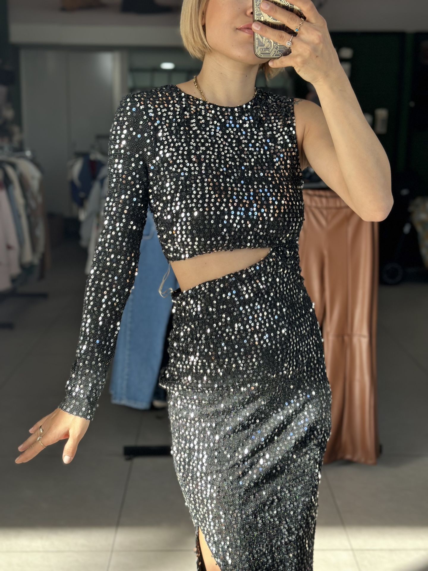 Tek Kol Bel Pencere Detay Yırtmaçlı Midi Boy Elbise Tek Kol Bel Pencere Detay Yırtmaçlı Midi Boy Elbise. SCST3125 Tek Kol Bel Pencere Detay Yırtmaçlı Midi Boy Elbise