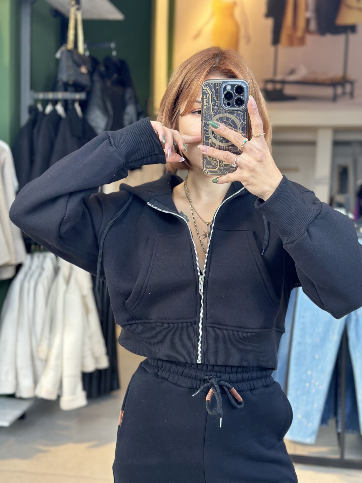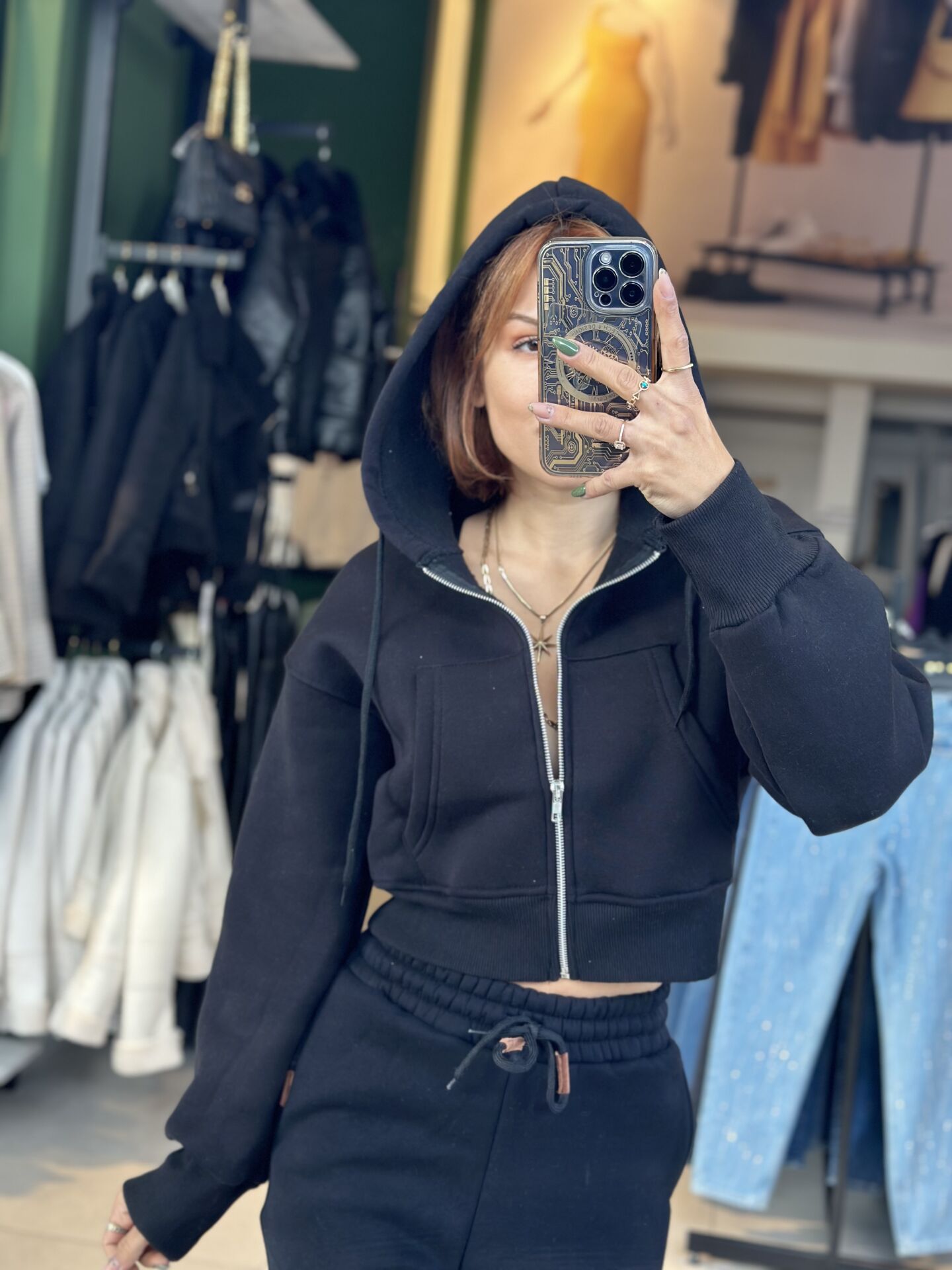 Üç İplik Kısa Fermuarlı Sweatshırt