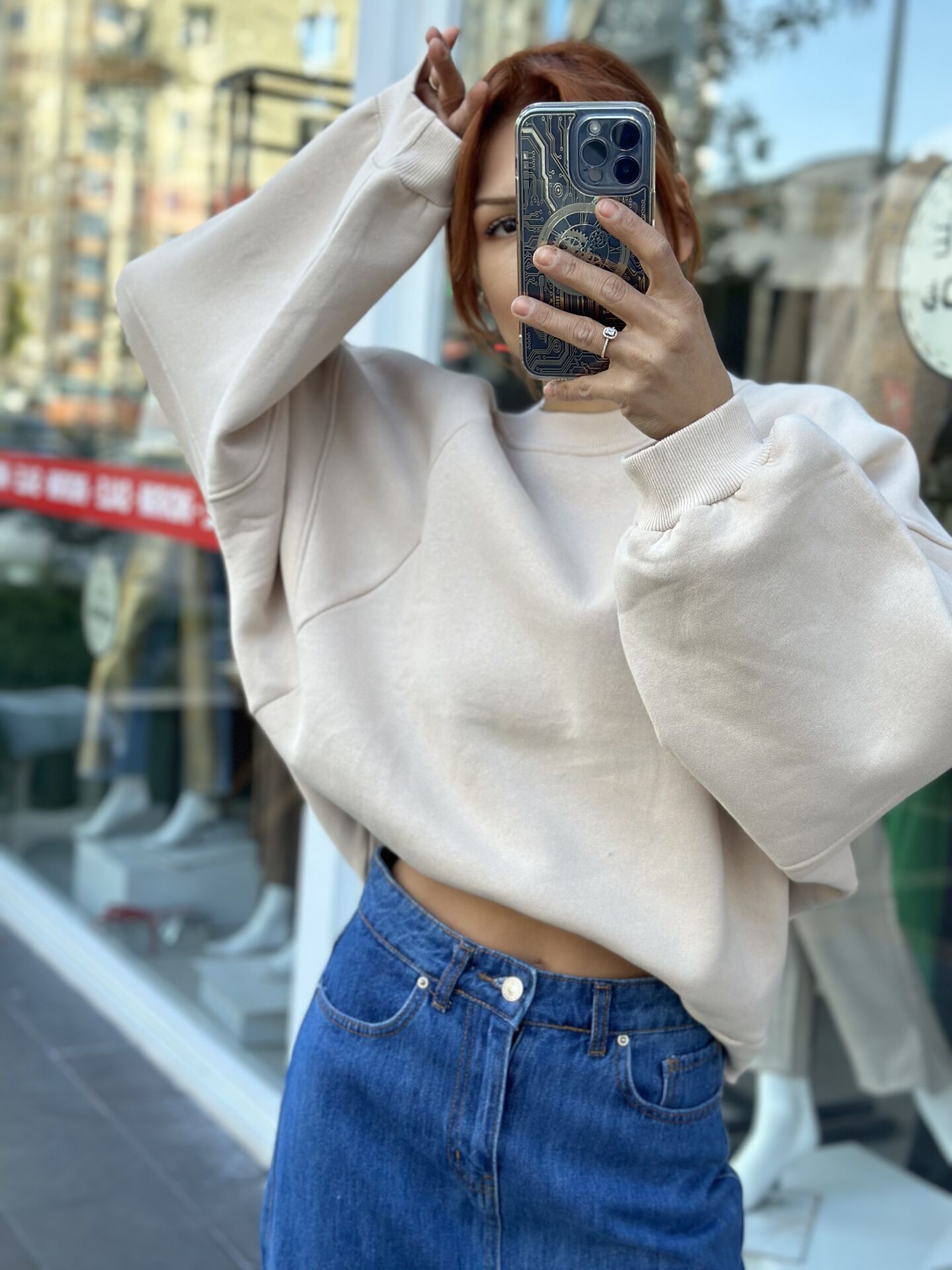Üç İplik Krem Oversize Kadın Sweatshırt