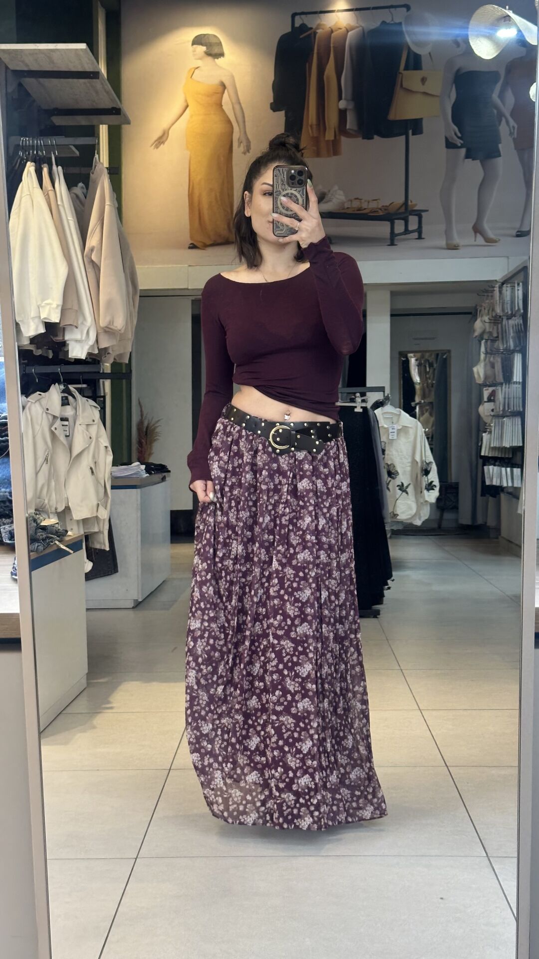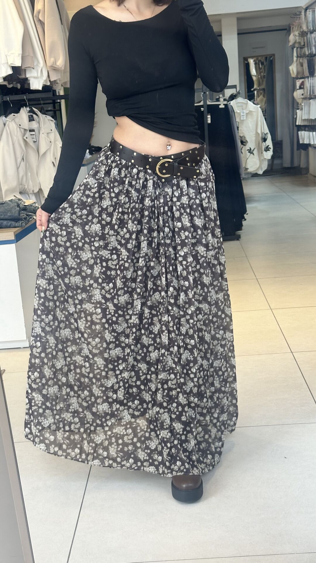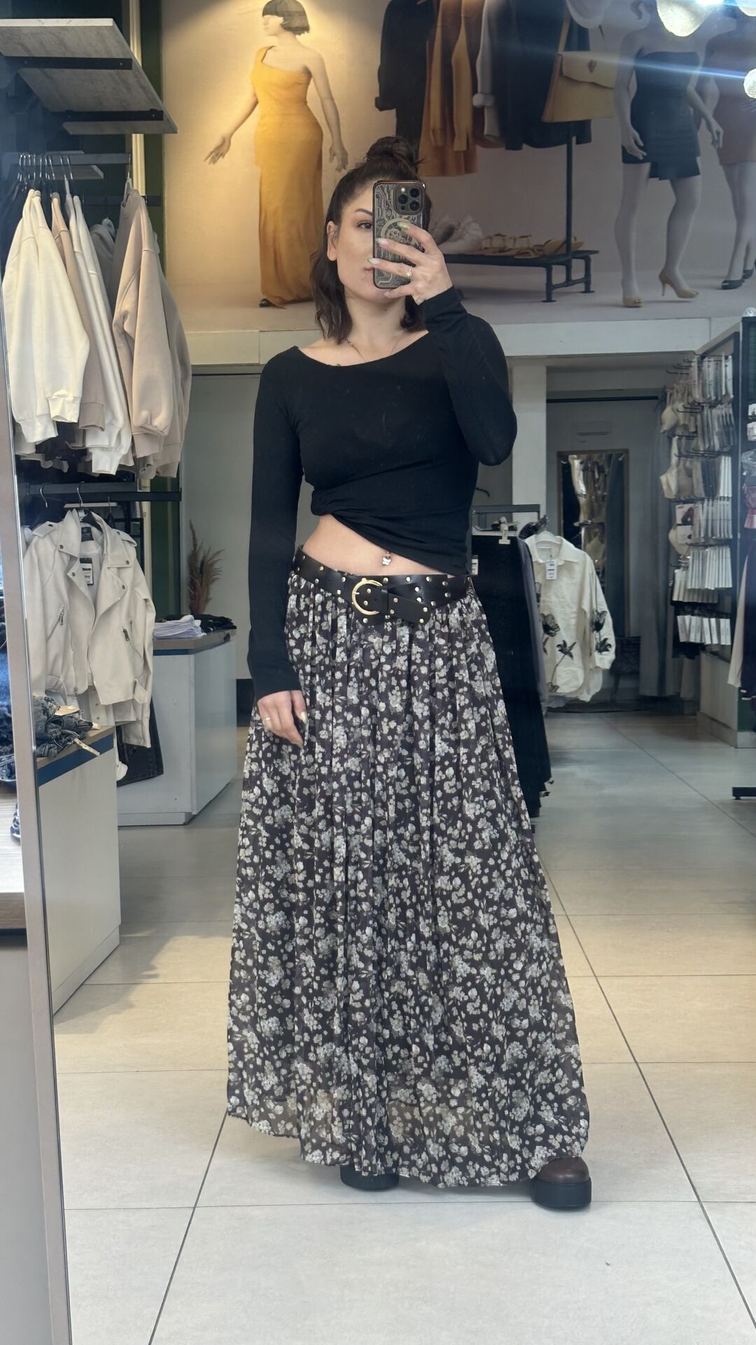 Uzun Çiçek Detaylı Şifon Etek.Uzun Çiçek Detaylı Şifon Etek