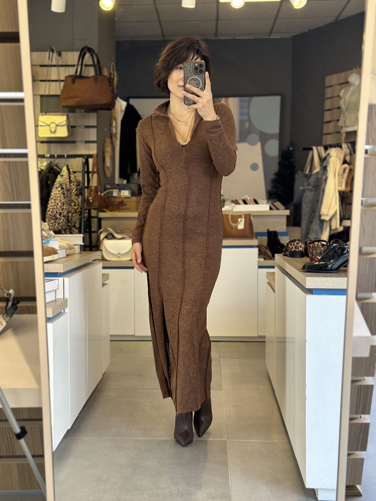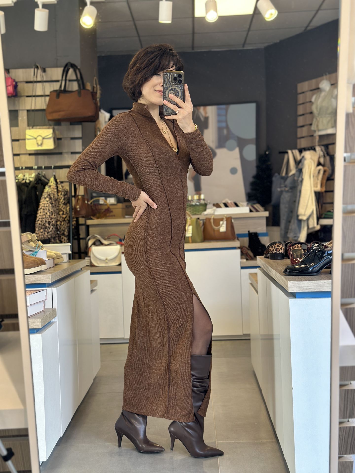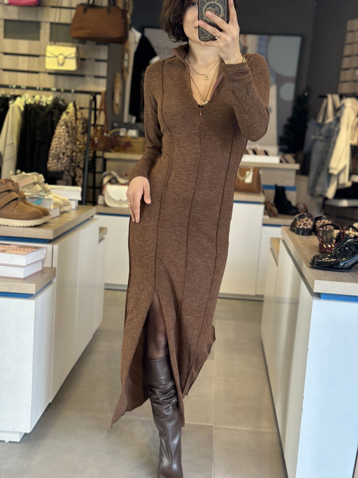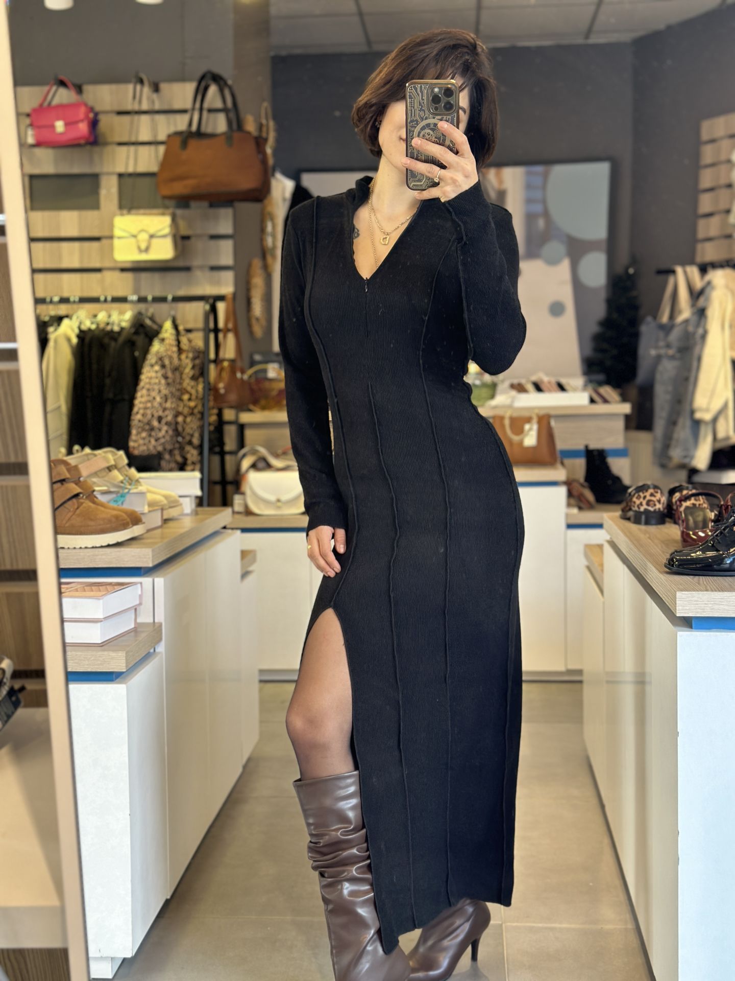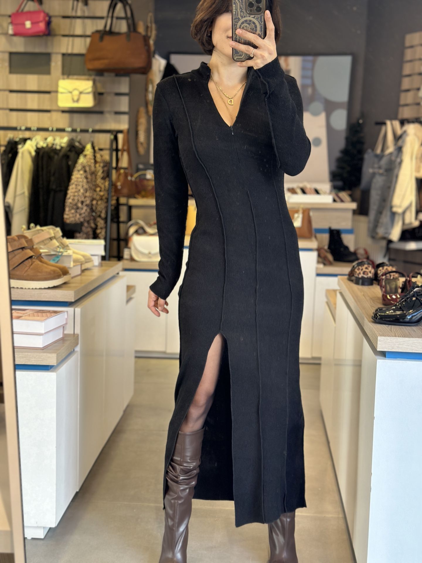 Yarım Fermuar Ters Dikiş Triko Elbise.