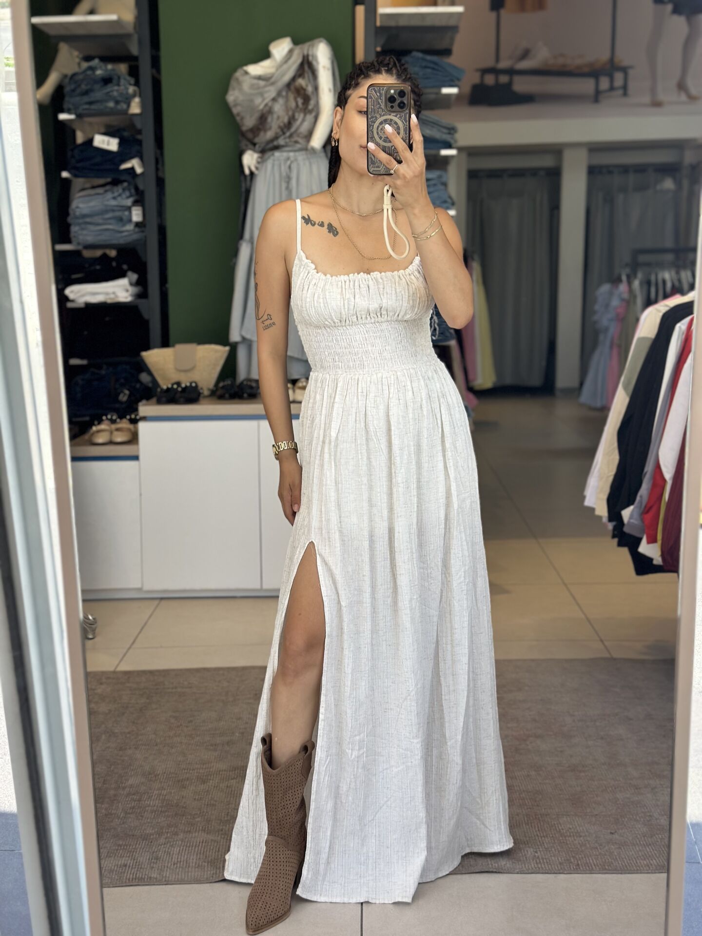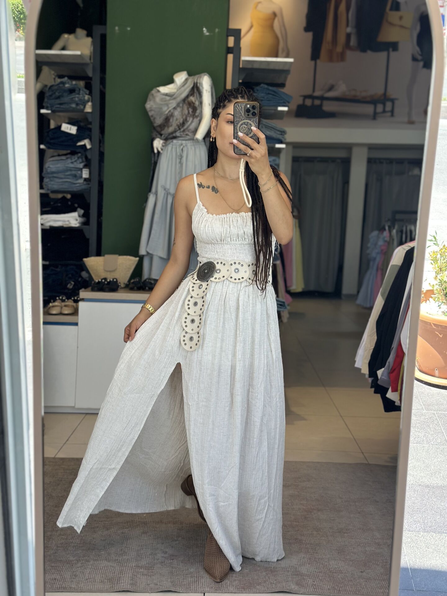 Bu yırtmaçlı müslin elbise, zarif ve modern bir tasarıma sahiptir. Hafif ve nefes alabilen müslin kumaşı, yaz aylarında rahatlıkla giyilebilir. Yırtmaç detayı, elbiseye feminen bir dokunuş katarak şıklığı tamamlar. Günlük kullanımdan özel davetlere kadar çeşitli etkinliklerde tercih edilebilir.